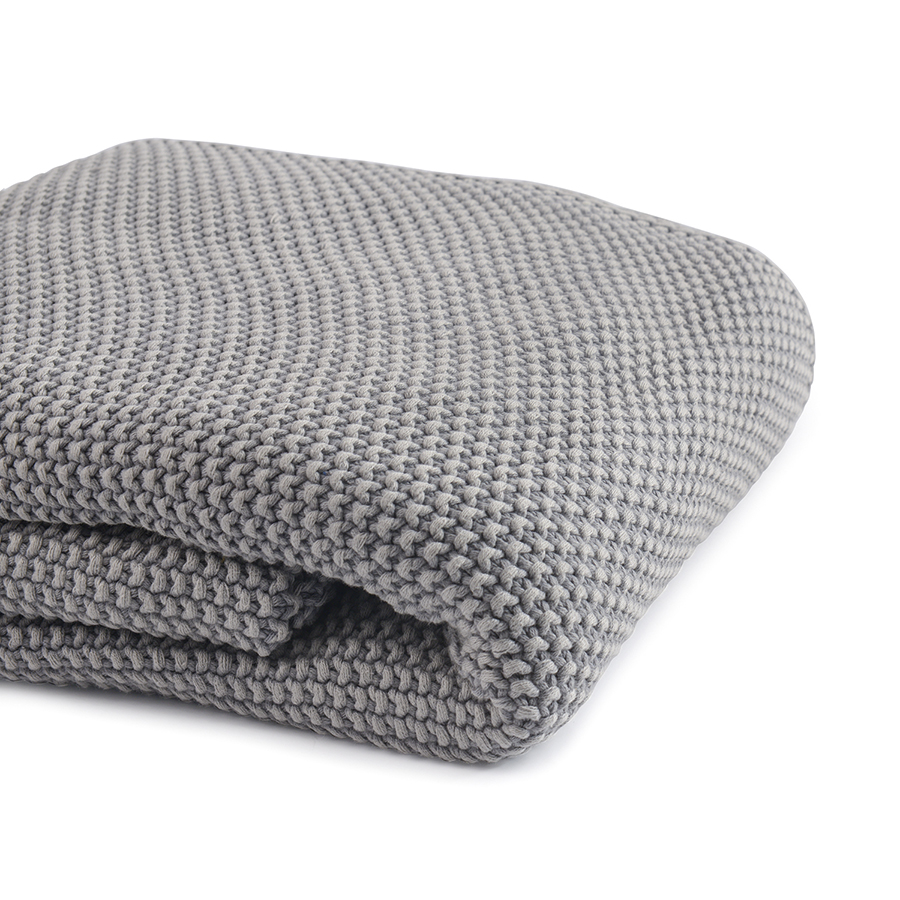 Плед из стираного хлопка серого цвета из коллекции Essential, 130х180 см