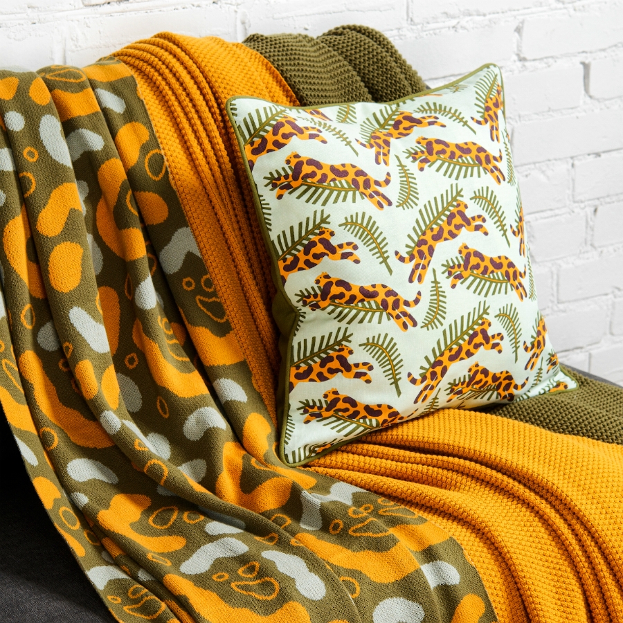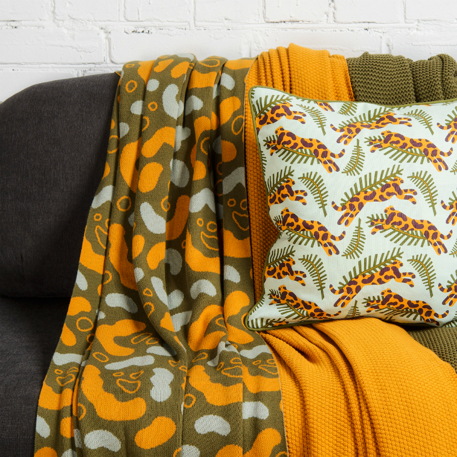 Плед вязаный с авторским принтом Animal spots из коллекции Wild, 130х180 см