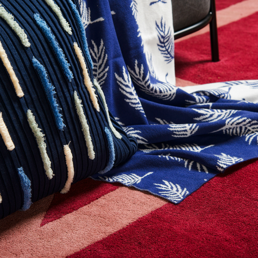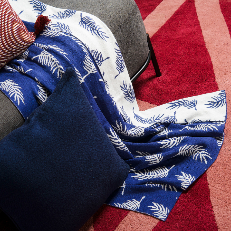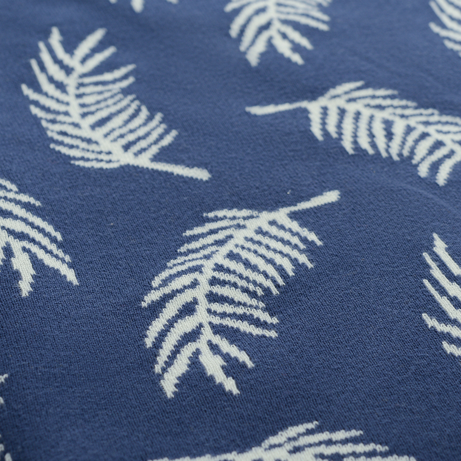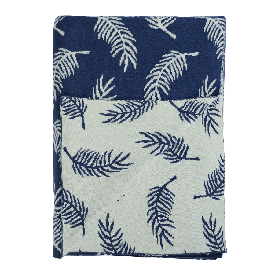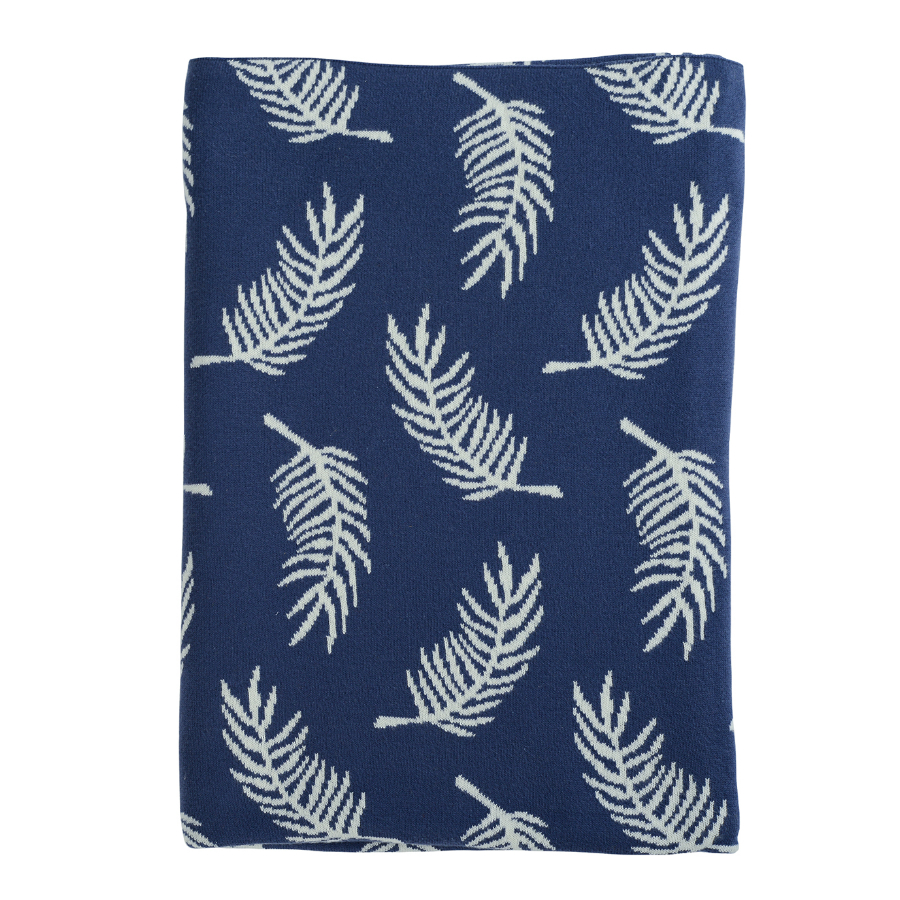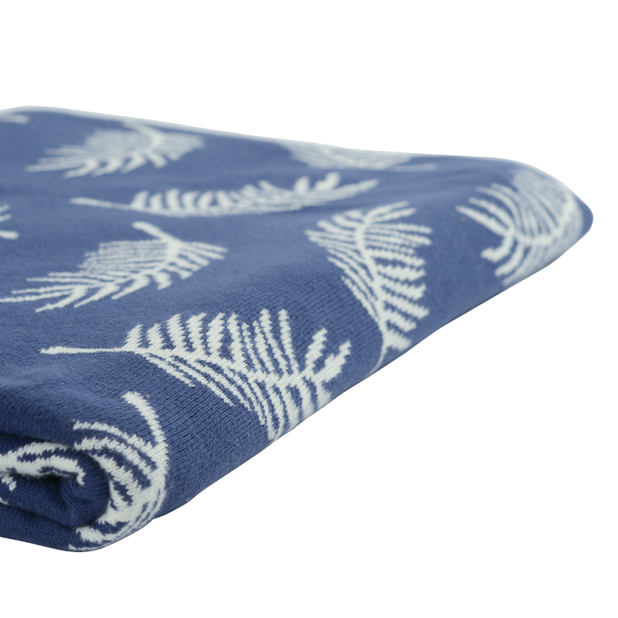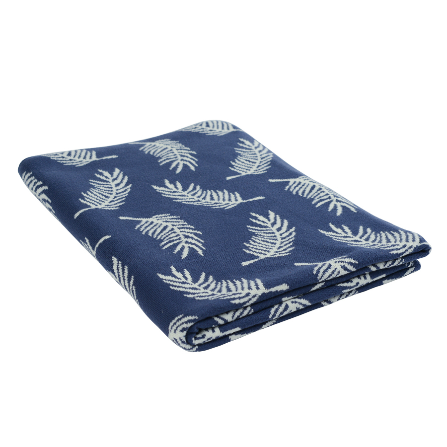 Плед вязаный с авторским принтом Fleshy Leaves синего цвета из коллекции Wild, 130х180 см