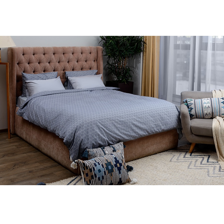 Контрастный узор с мотивами русского севера добавит ноту национального колорита в спальную комнату. Материал отличается особым способом пряжи: нити переплетаются в скрученном виде, что придает ткани дополнительную прочность. Еще одна особенность жаккарда – гладкий, приятный на ощупь текстиль, с которым не захочется расставаться после крепкого сна.