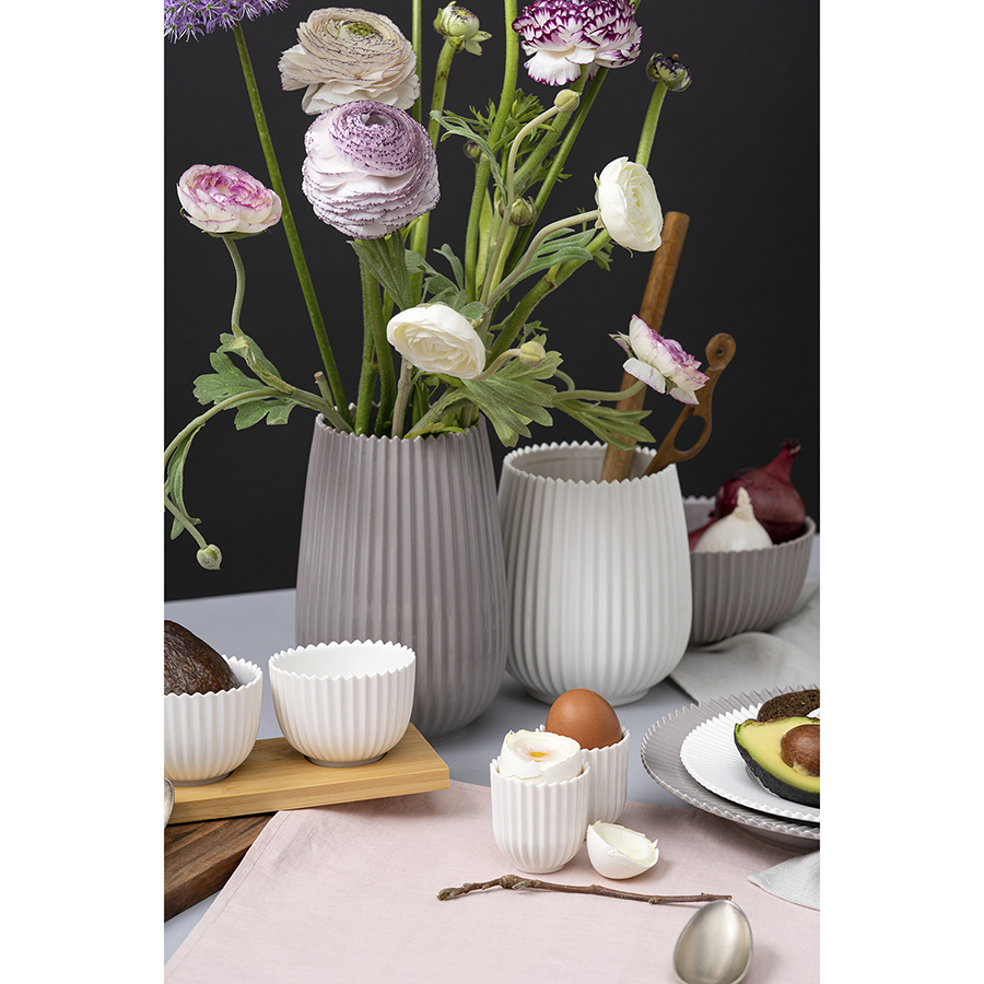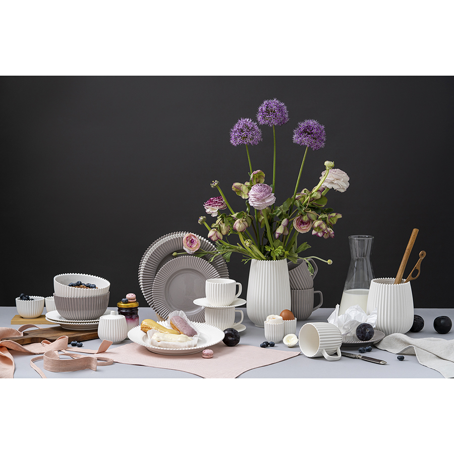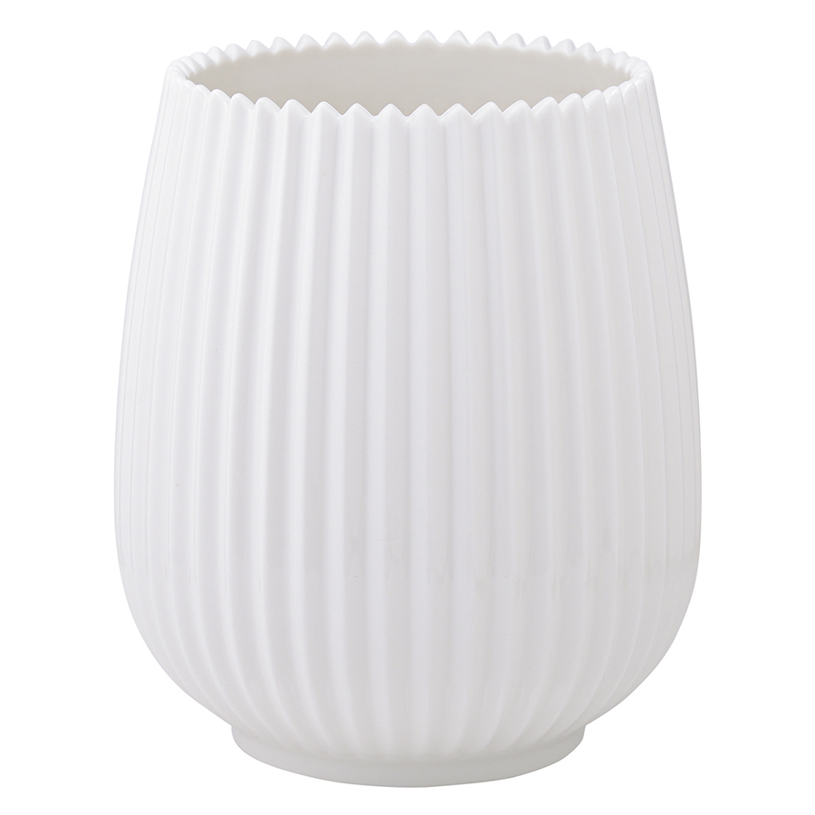 "Подставка беловго цвета из коллекции Edge поможет организовать компактное хранение кухонных инструментов — лопаток, шумовок, половников, щипцов. Рифленая поверхность и оригинальный зубчатый край делают эту сугубо утилитарную вещь по-настоящему изящной, а чистый белый цвет позволяет вписать в любой интерьер. Подставка идеально сочетается с другими предметами из коллекции Edge — вазой, сахарницей, тарелками и чашками.