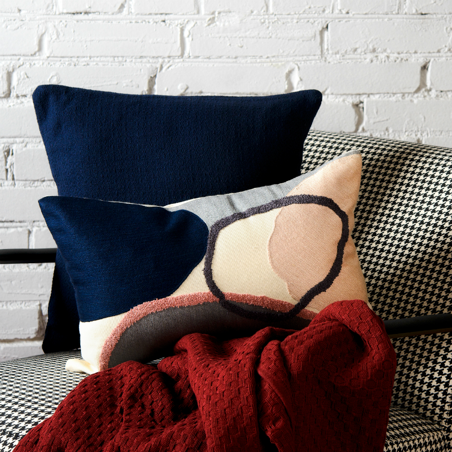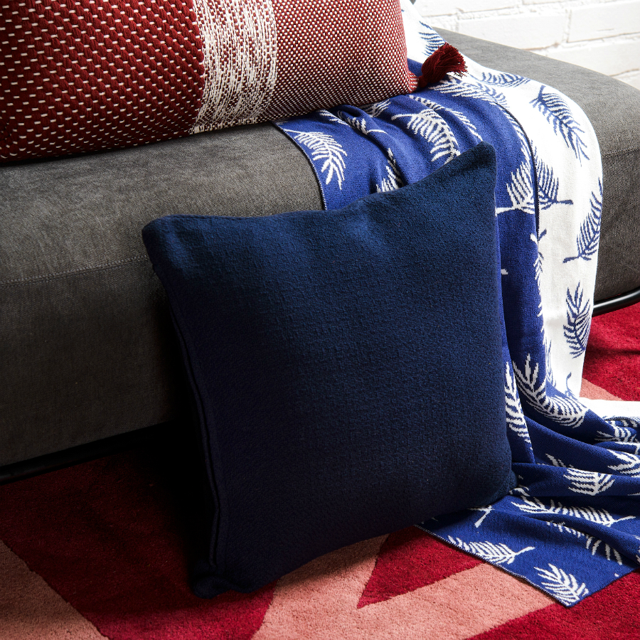 Подушка декоративная из хлопка фактурного плетения темно-синего цвета из коллекции Essential, 45х45