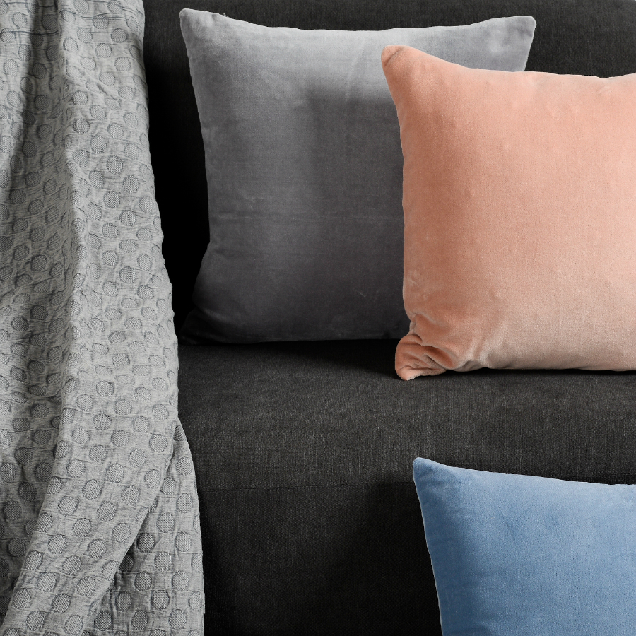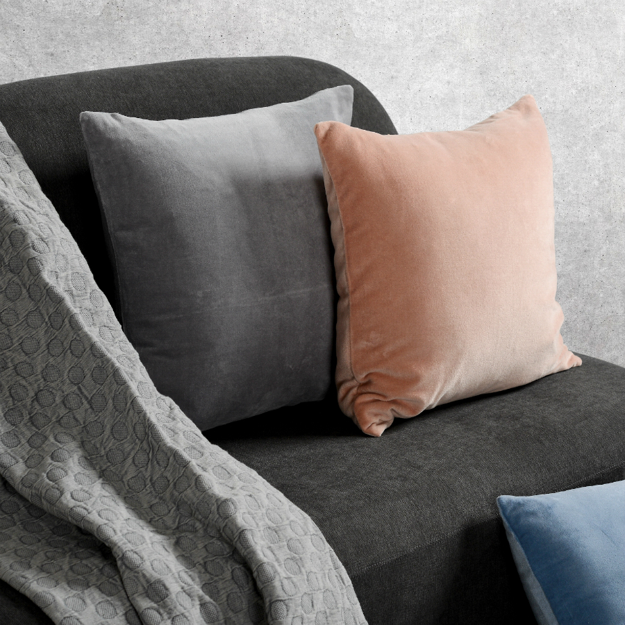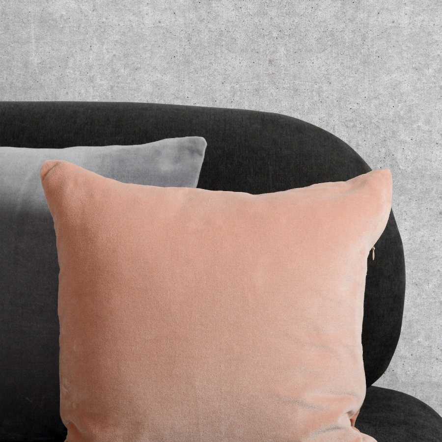 "Декоративная подушка цвета пыльной розы выполнена из прочного хлопкового бархата. Нежный, приятный на ощупь материал не электризуется, не вызывает аллергию, и за ним легко ухаживать. За счет плотного наполнителя изделие хорошо держит форму. Плотность ткани - 250GSM.