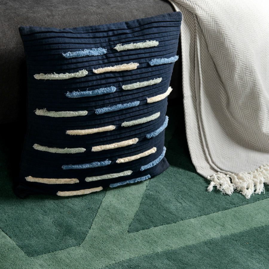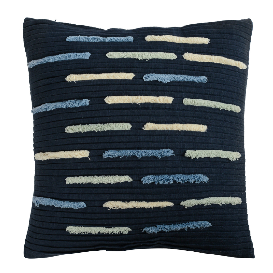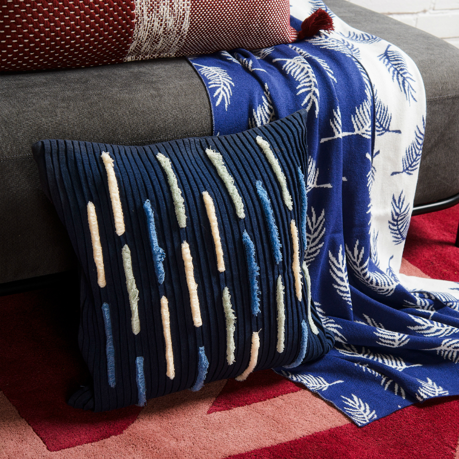 "Декоративная подушка из хлопка из коллекции Ethnic станет украшением интерьера гостиной и спальни. Наполнитель – эластичный полиэстер, благодаря которому подушка быстро принимает исходную форму и не деформируется после стирок. Чехол из гипоаллергенного, приятного на ощупь хлопка легко снимается при необходимости. Спереди – фактурный авторский орнамент, созданный из короткой бахромы. Сбоку – скрытая застежка на молнию. Плотность ткани - 345GSM.