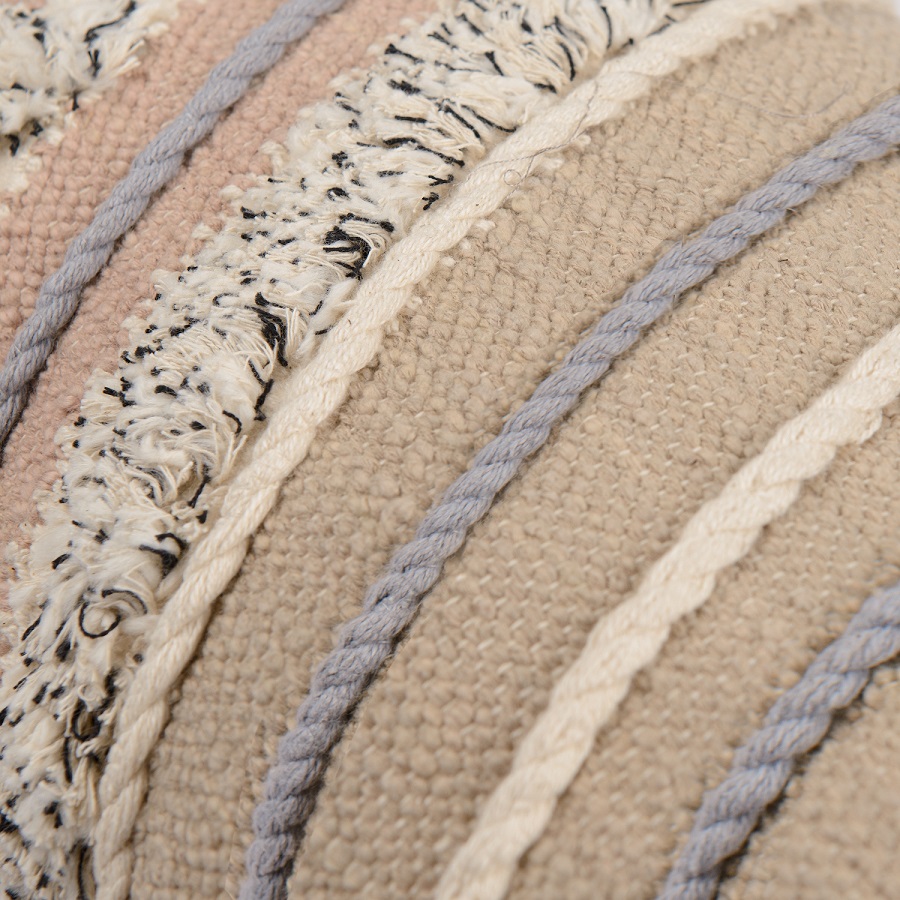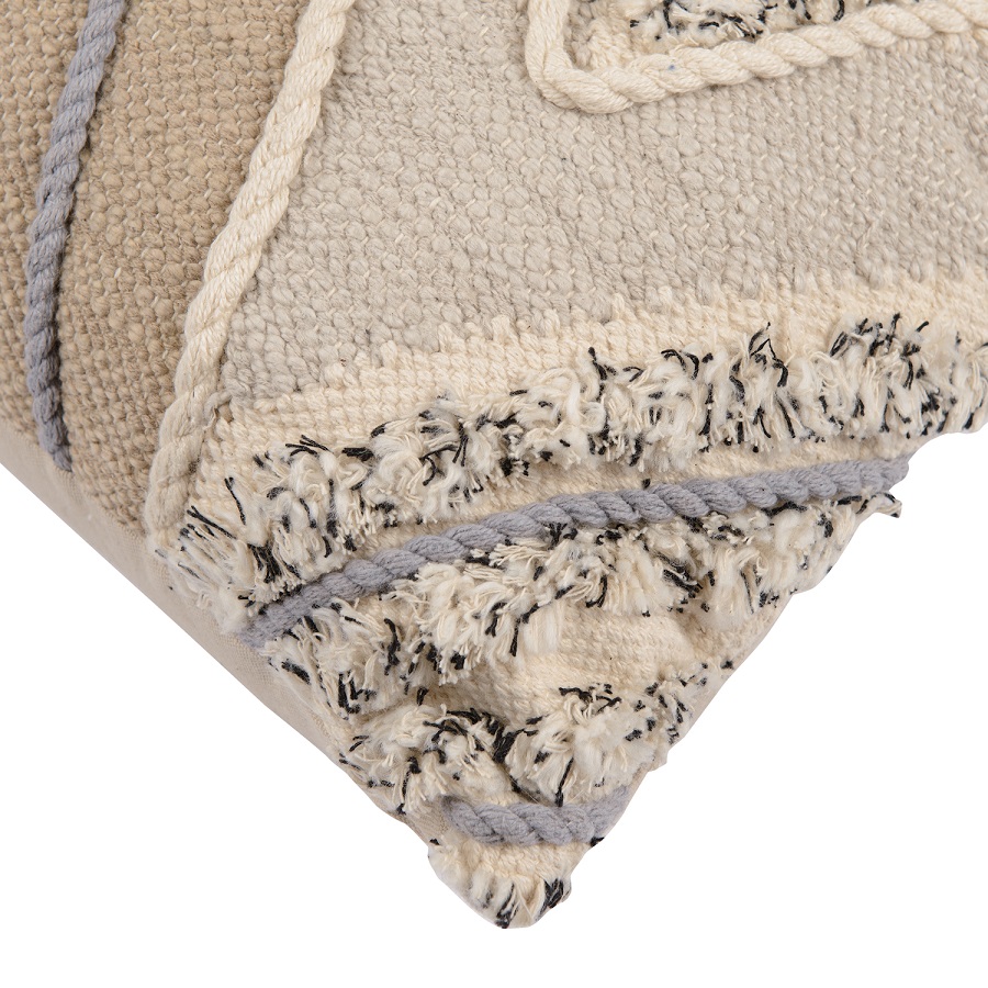 "Декоративная подушка с кантом и бахромой из коллекции Ethnic добавит этнические мотивы в любой интерьер. Рисунок в натуральной пастельной гамме и объемный декор легко сочетать с другим текстилем. Наполнитель – эластичный полиэстер, благодаря которому подушка быстро принимает форму и не деформируется после стирок. Чехол изготовлен из прочного, плотного 100%, хлопка, который не электризуется и не вызывает аллергию. Чехол на молнии легко снимается при необходимости. Плотность ткани - 325GSM.