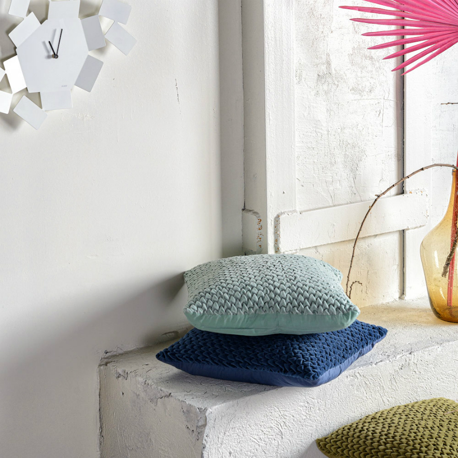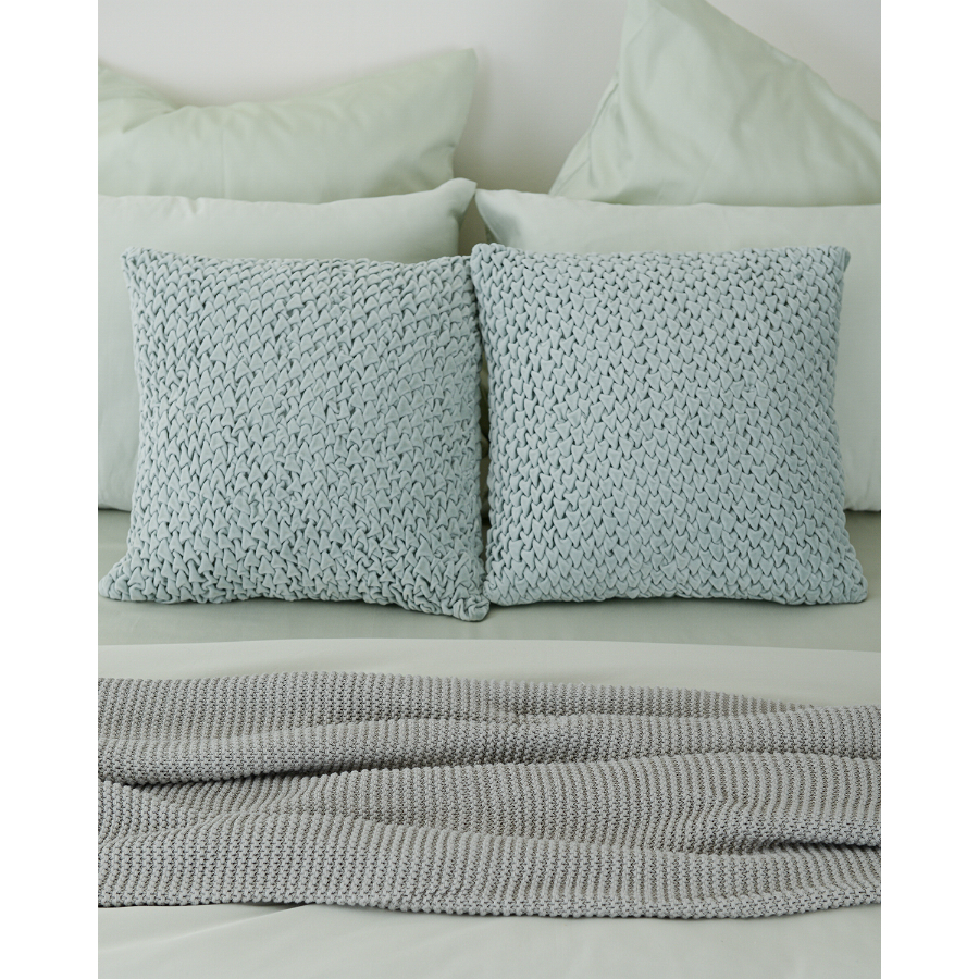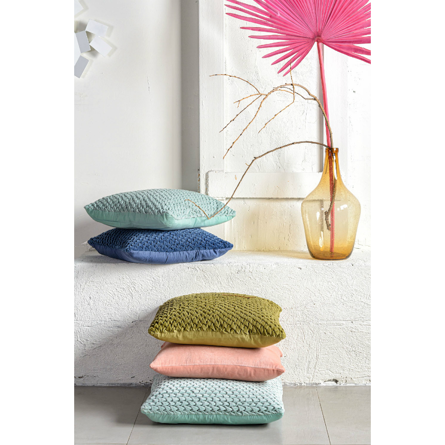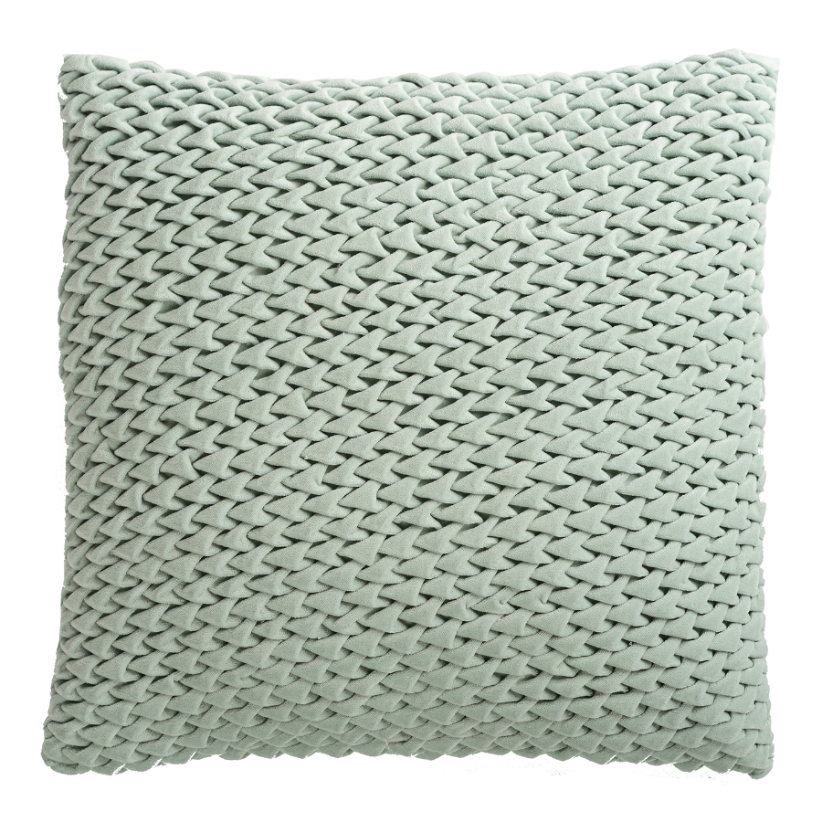 Подушка декоративная стеганая из хлопкового бархата мятного цвета из коллекции Essential, 45х45 см