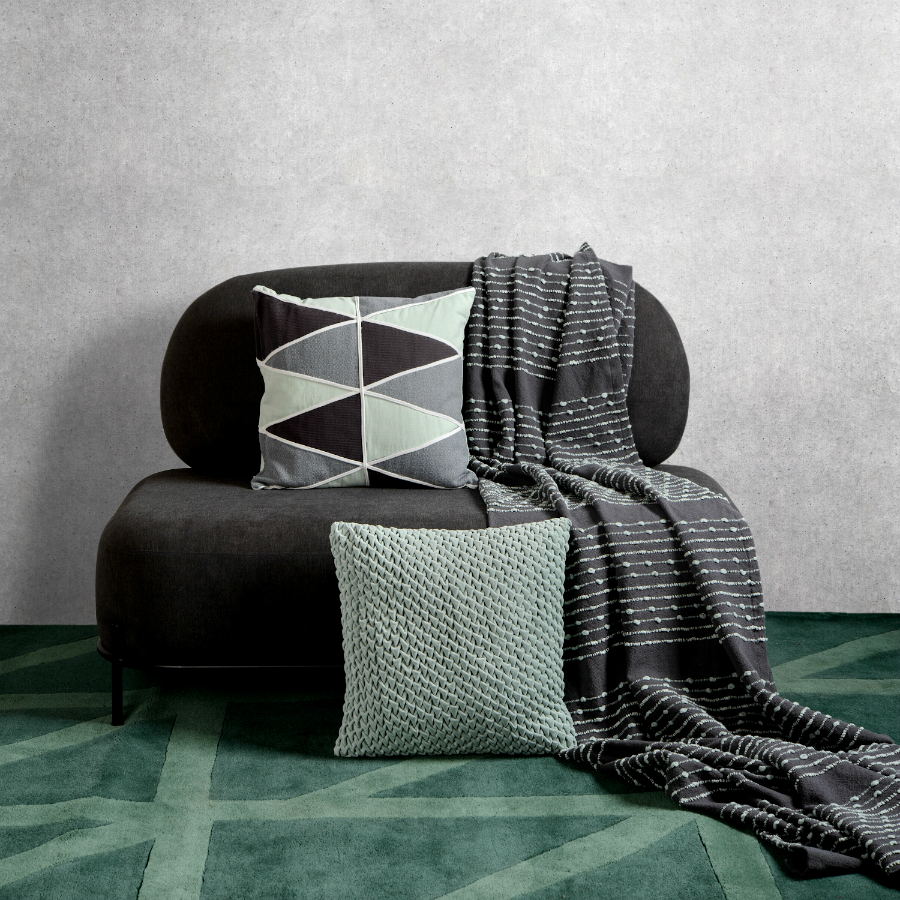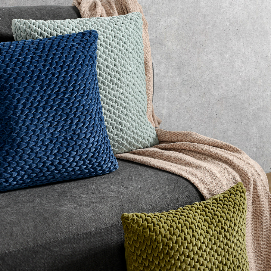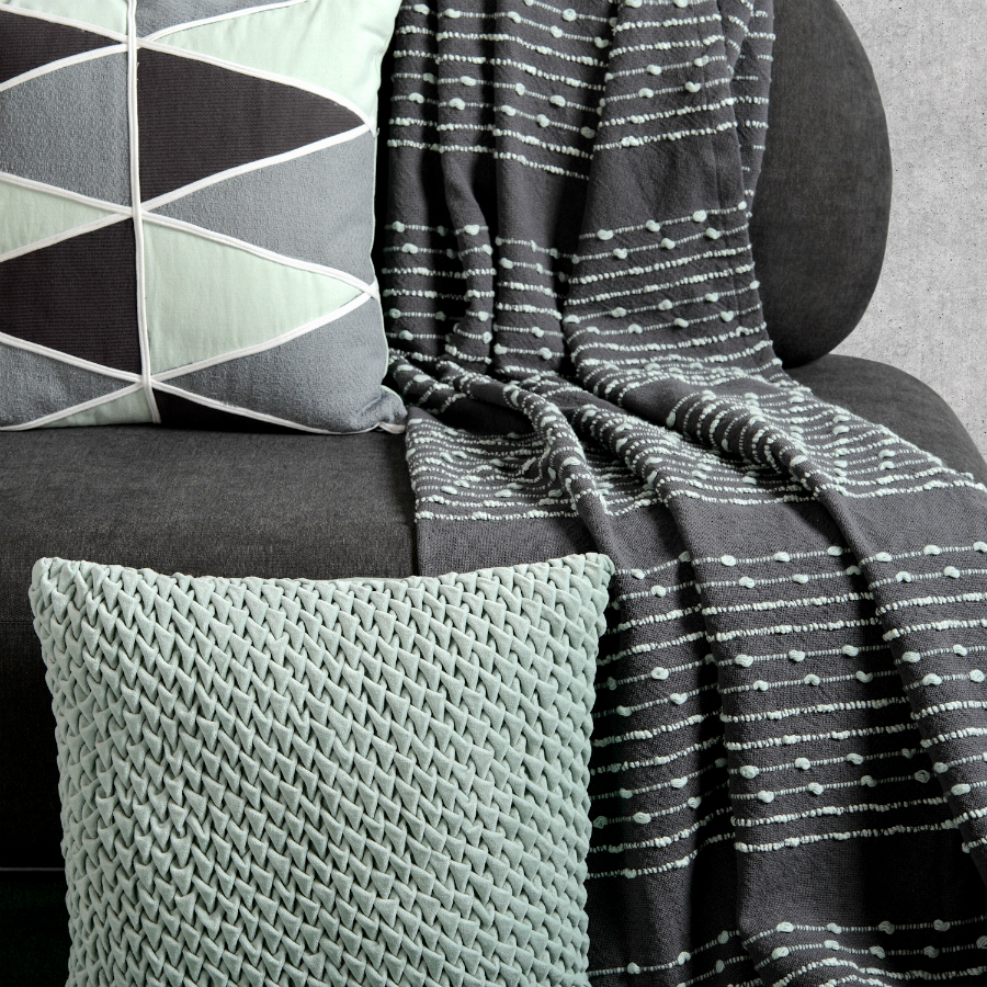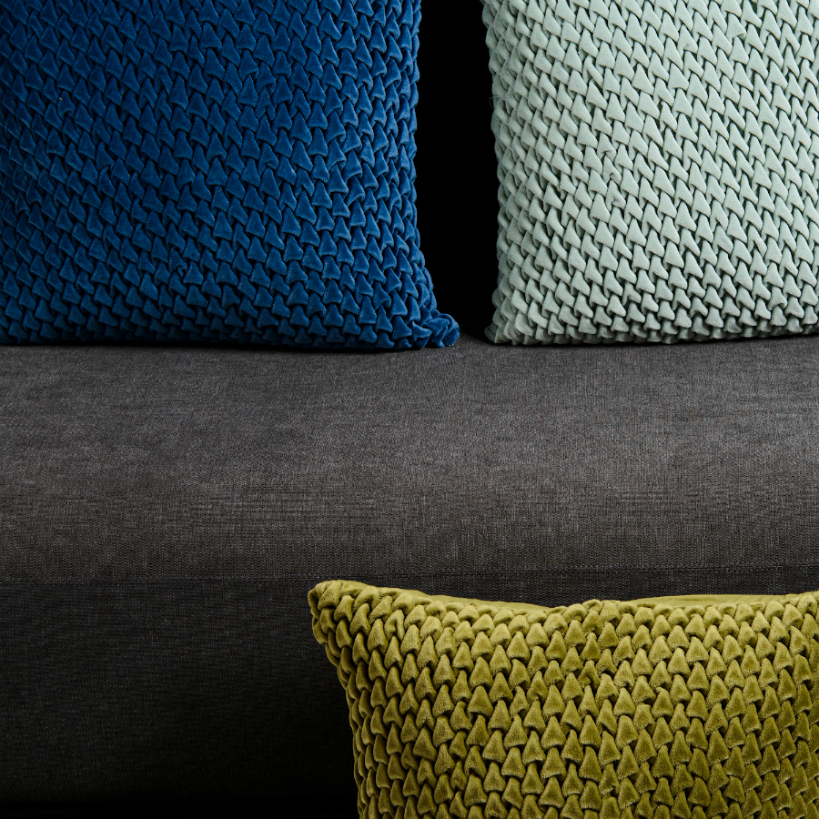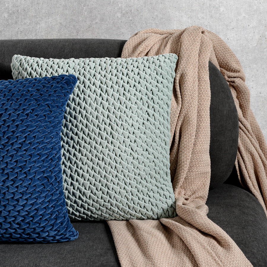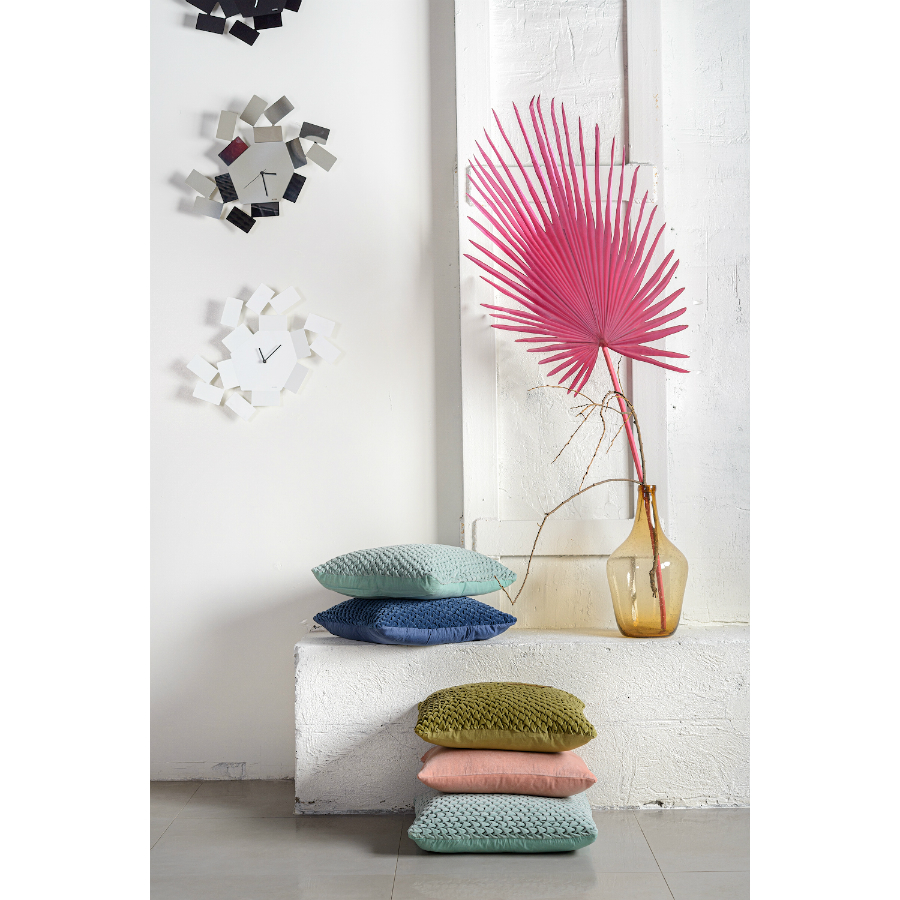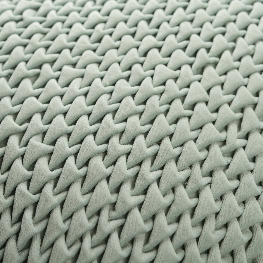"Декоративная подушка с фактурным стеганым узором выполнена из прочного хлопкового бархата. Нежный, приятный на ощупь материал не электризуется, не вызывает аллергию, и за ним легко ухаживать. За счет плотного наполнителя изделие мятного оттенка хорошо держит форму.