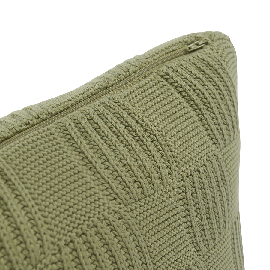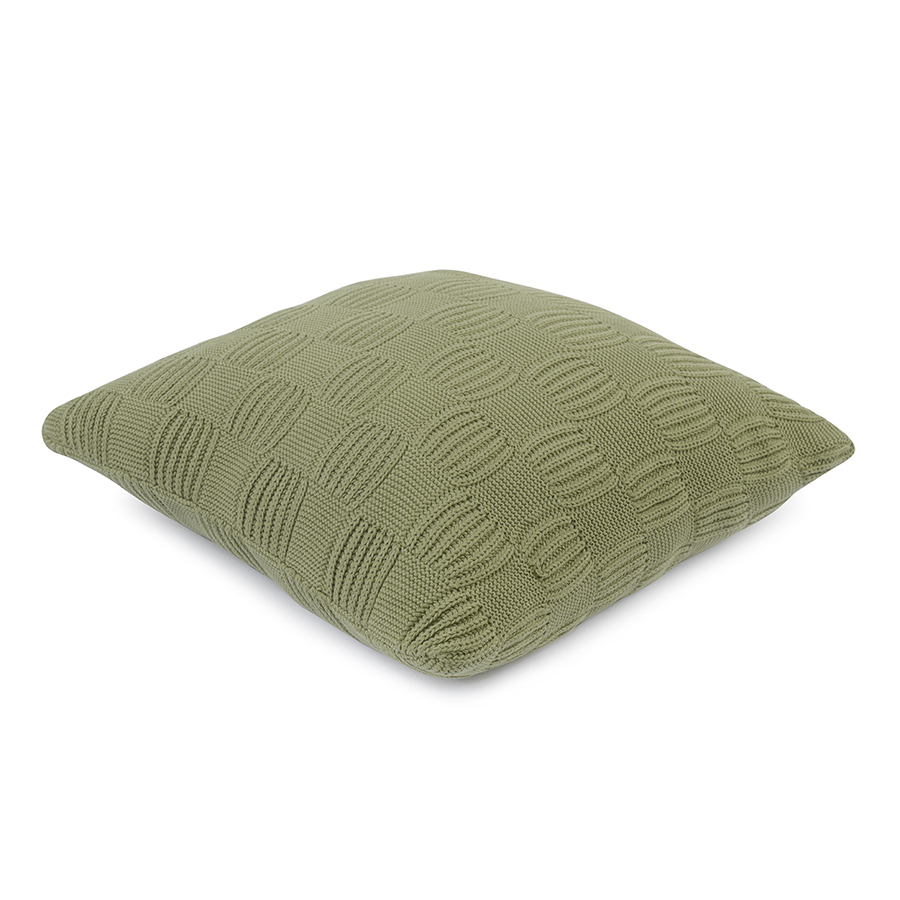 Подушка из хлопка рельефной вязки травянисто-зеленого цвета из коллекции Essential, 45х45 см