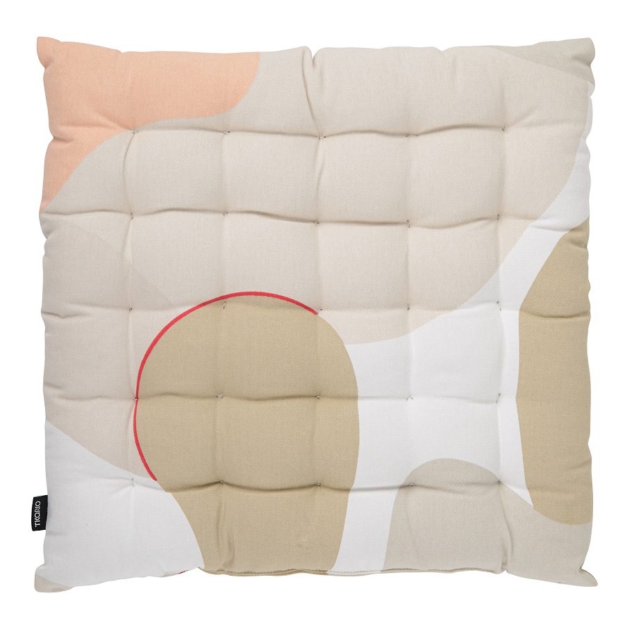 "Подушка на стул из хлопка бежевого цвета с авторским принтом из коллекции Freak Fruit - , ,практичное и стильное украшение кухонной мебели. Абстрактный принт не имеет повторяющегося раппорта и представляет собой единую законченную картину.