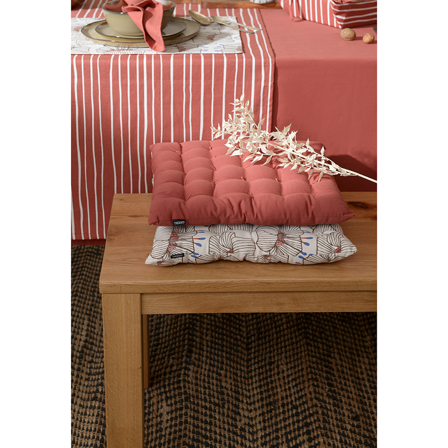 Подушка на стул из хлопка молочного цвета с принтом Цветы из коллекции Prairie, 40х40 см