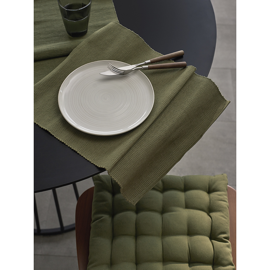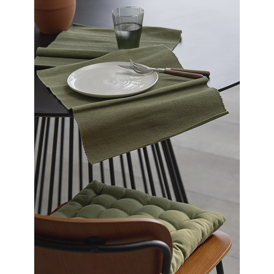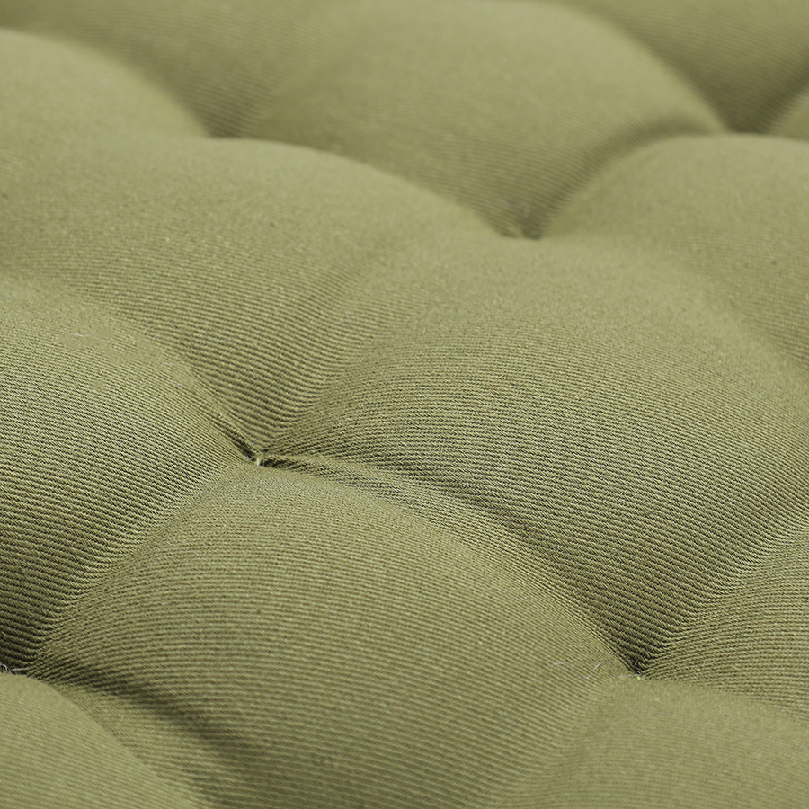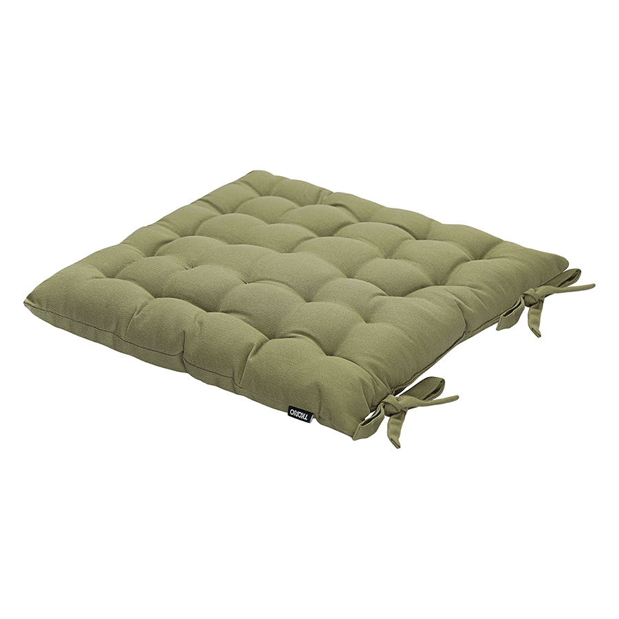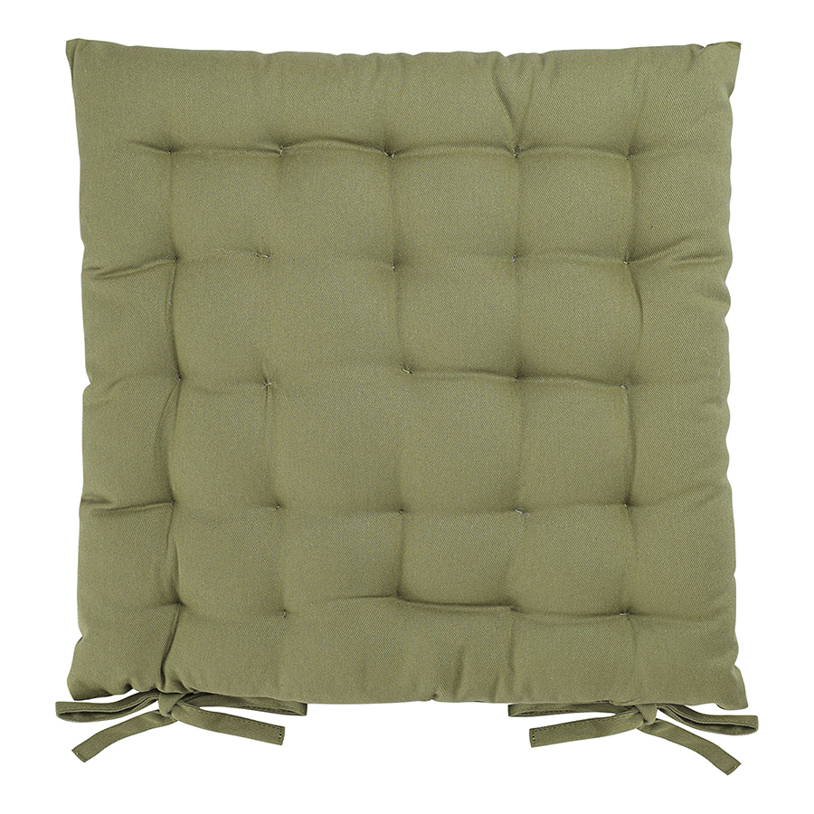"Подушка оливкового цвета из коллекции Essential станет отличным дополнением к вашей кухонной мебели. Ее можно использовать в качестве мягкой накладки на деревянные или металлические стулья, чтобы сделать их жесткую поверхность более удобной для сидения. Подушка легко фиксируется на ножках мебели с помощью специальных завязок. Однотонное изделие в лаконичном дизайне органично вписывается в любой современный интерьер. Чехол подушки изготовлен из экологичного и долговечного 100%, хлопка. В качестве наполнителя используется плотный полиэстер, который позволяет изделию сохранять первоначальную форму на протяжении всего срока службы.