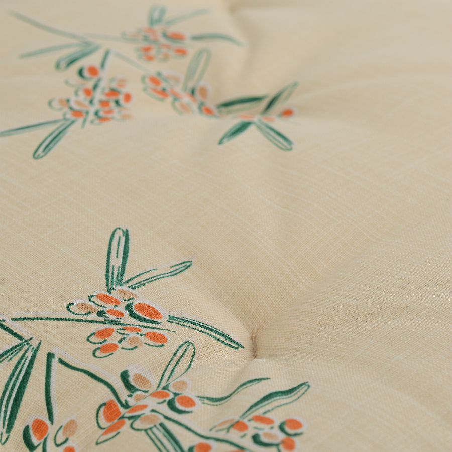 "Удобная дизайнерская подушка их хлопка с принтом из аппетитных ягод идеально впишется в интерьер кухни или гостиной. Мягкий наполнитель из полиэстера делает подушку комфортной, а оригинальный рисунок - заметной и стильной. Проста в уходе и долговечна. Тип плетения: кулирка. Плотность ткани - 290GSM.