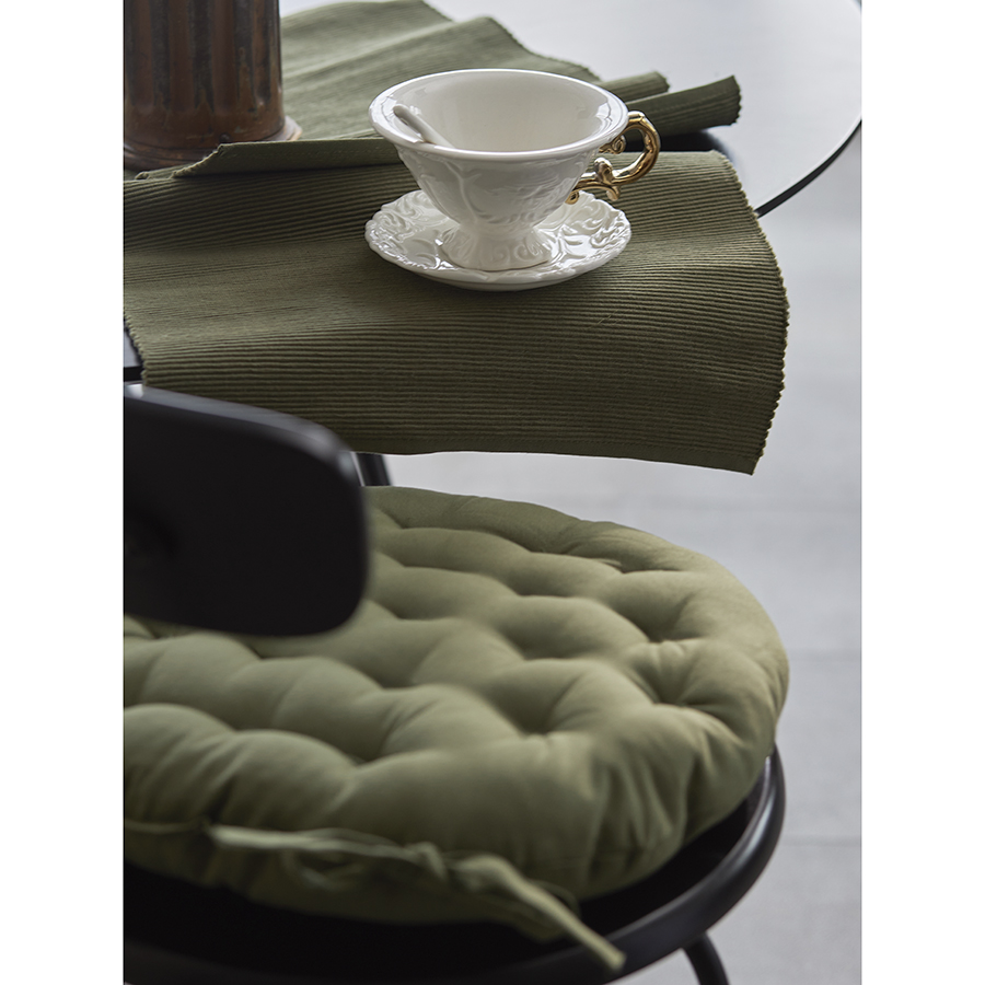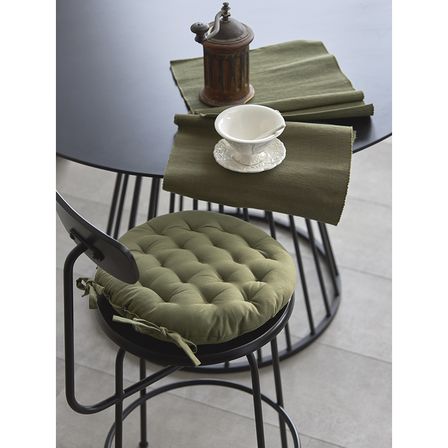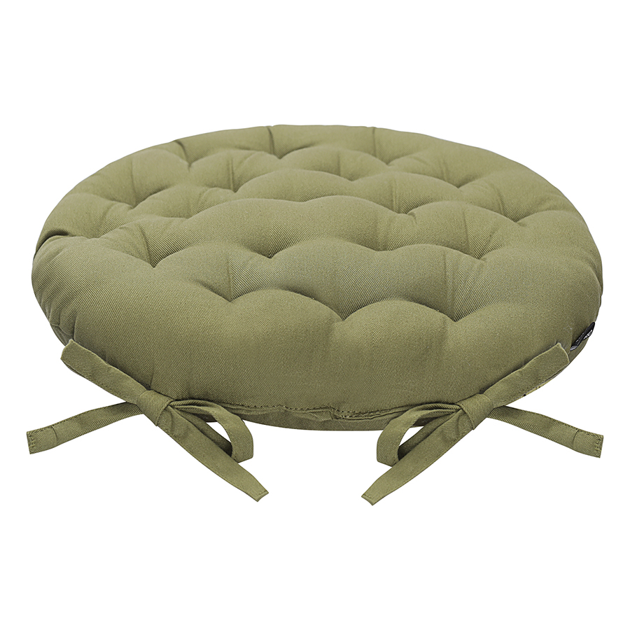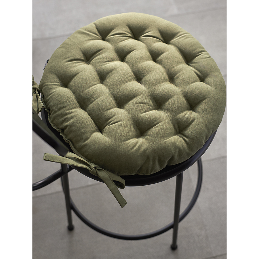 Подушка на стул круглая из хлопка оливкового цвета из коллекции Essential, 35 см, Tkano