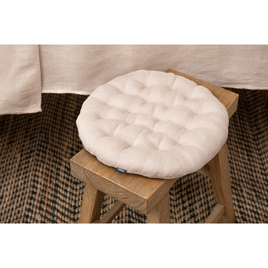 Подушка на стул круглая из стираного льна бежевого цвета из коллекции Essential, 40х40x4 см