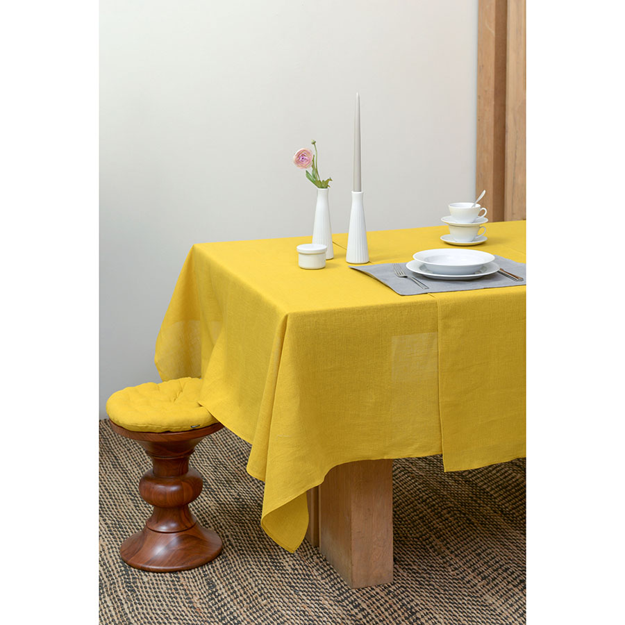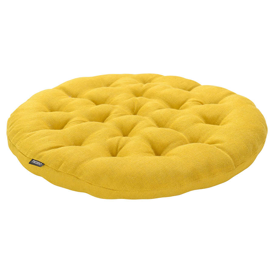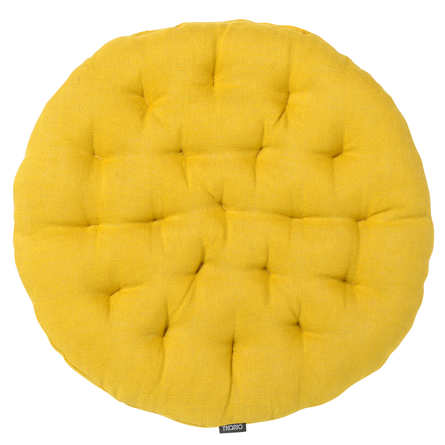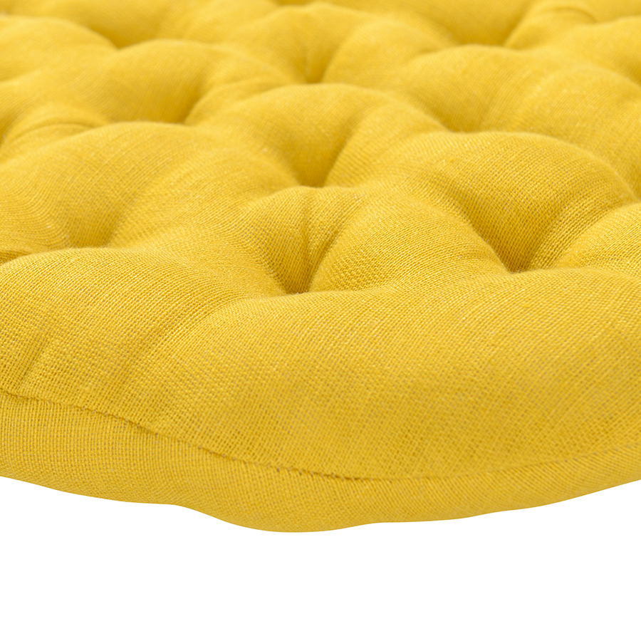 Подушка на стул круглая из стираного льна горчичного цвета из коллекции Essential, 40х40x4 см