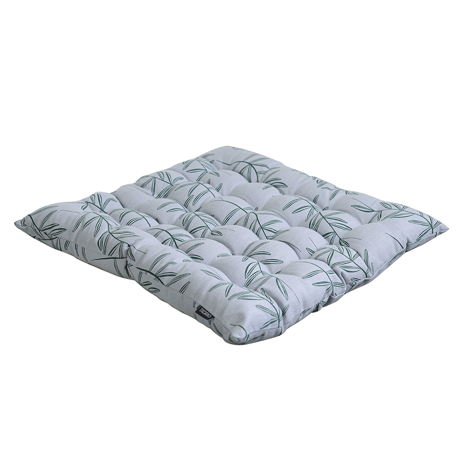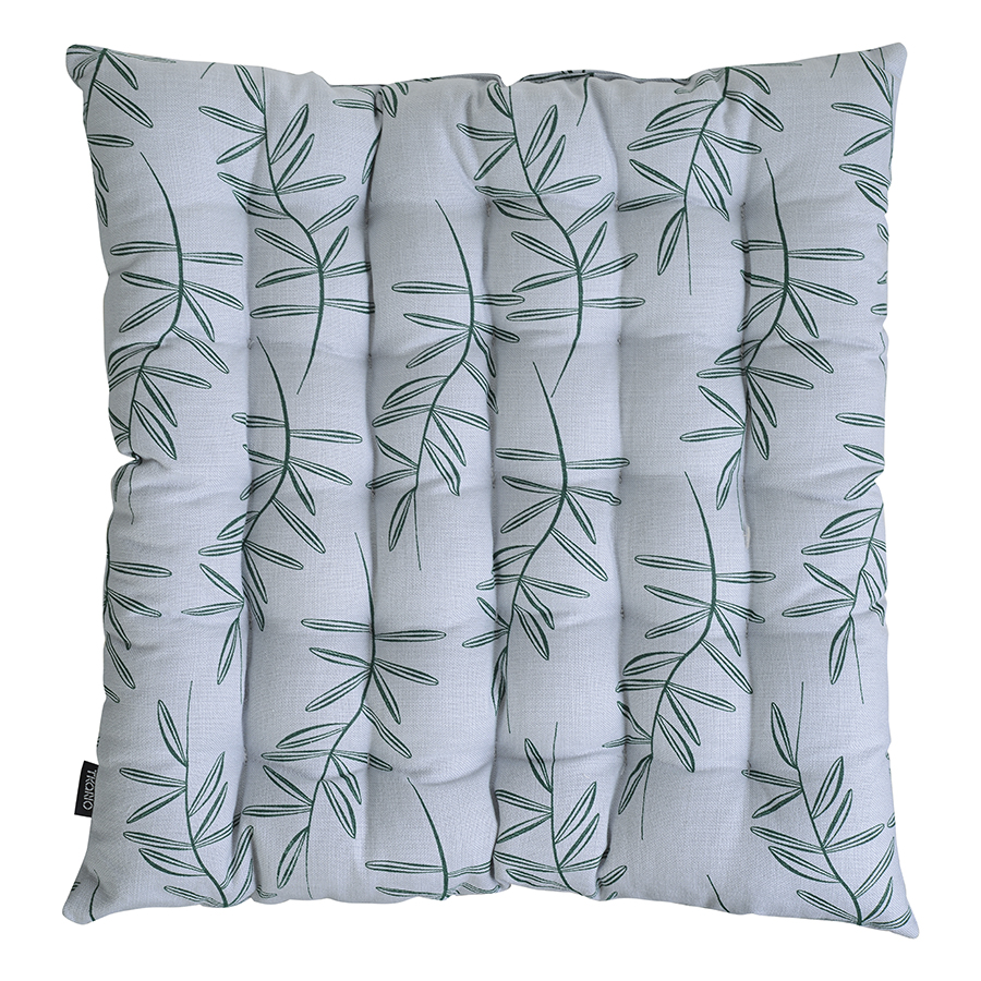 "Мягкая стеганая подушка на стул станет отличным завершающим штрихом в создании уютного интерьера. Чехол из 100%, хлопка с графичным дизайнерским принтом Папоротник, наполнитель - полиэстер. Проста в уходе и долговечна. Тип плетения: кулирка. Плотность ткани - 290GSM.