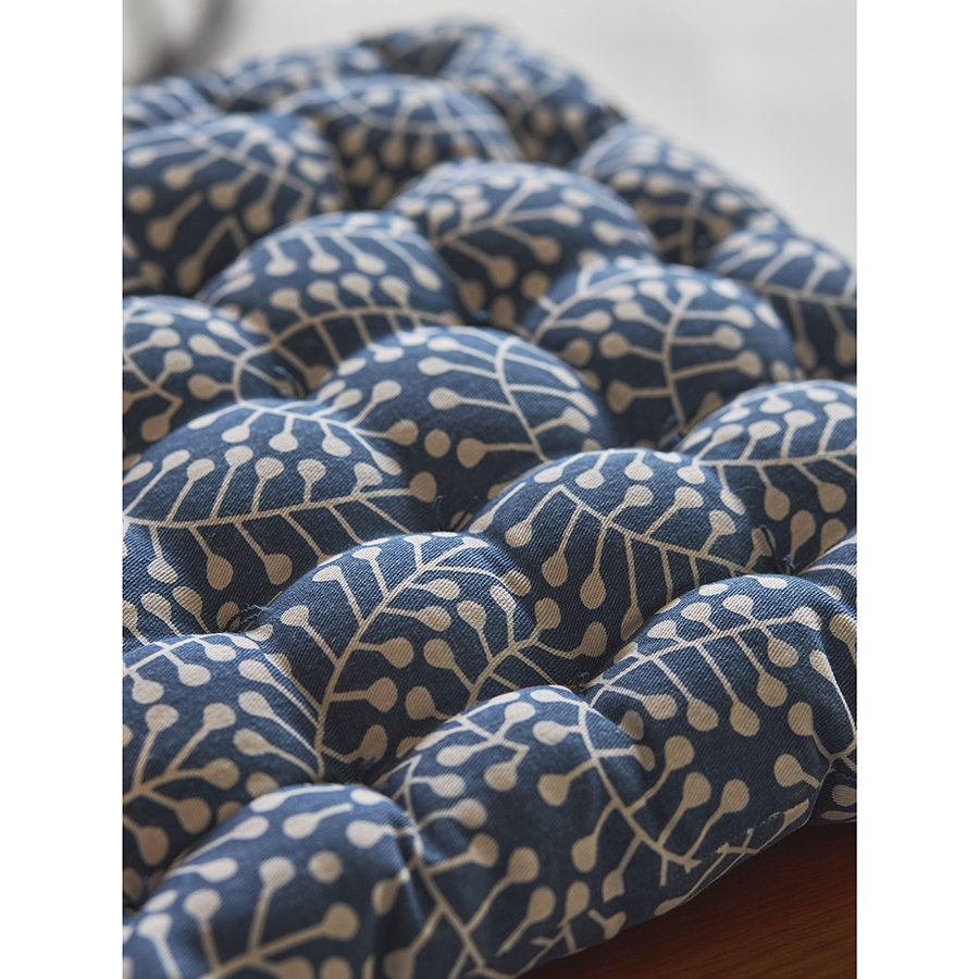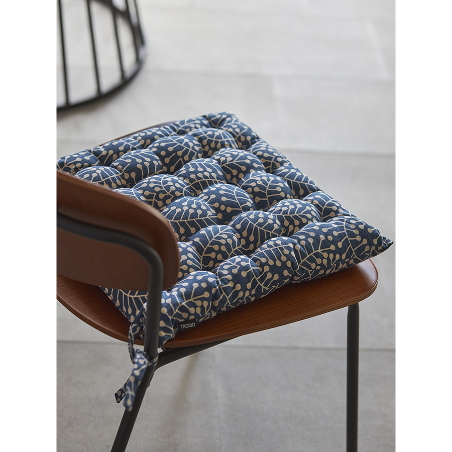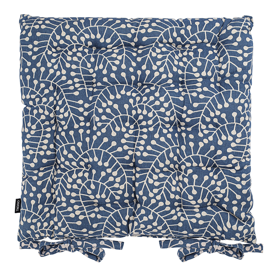 "Подушка на стул темно-синего цвета с принтом Спелая Смородина из коллекции Scandinavian touch сделает жесткую поверхность домашней или уличной мебели более комфортной для сидения. Изделие с авторским принтом, разработанным одним из ведущих финских дизайнерских агентств, органично впишется в любой современный интерьер. Чехол подушки выполнен из прочного хлопка, который долго сохраняет привлекательный вид и не деформируется после множества стирок. Благодаря плотному наполнителю из полиэстера изделие сохраняет свою первоначальную форму на протяжении всего срока службы. Подушка легко фиксируется на ножках мебели с помощью специальных завязок.