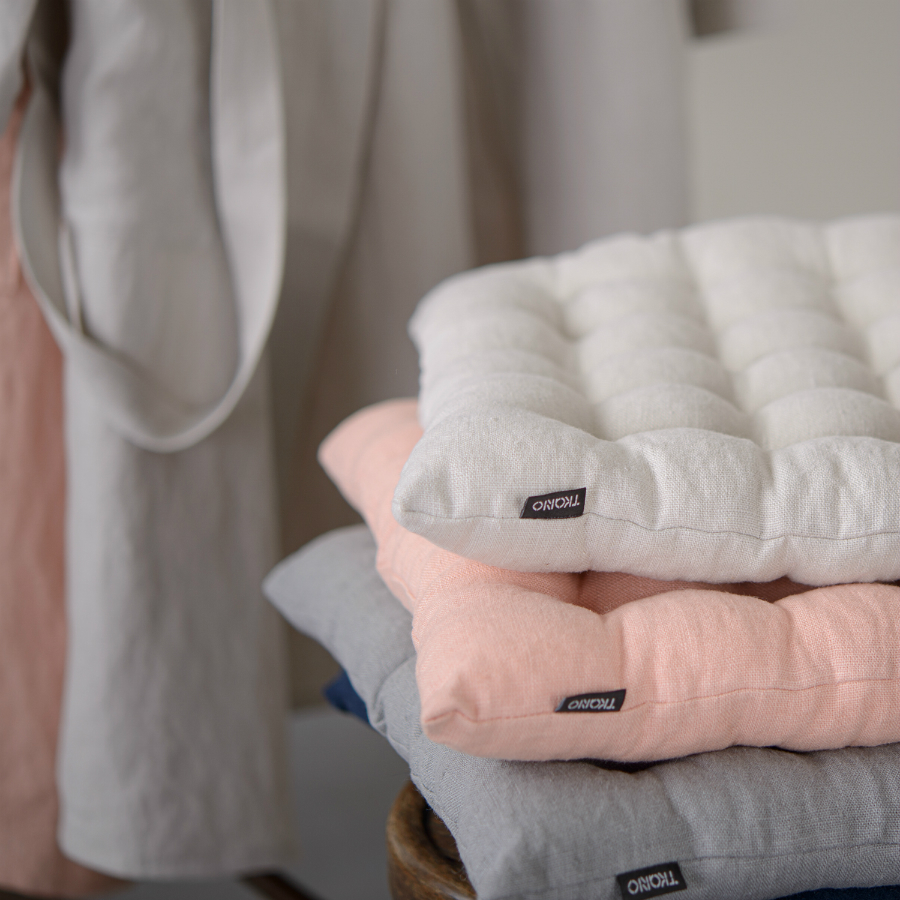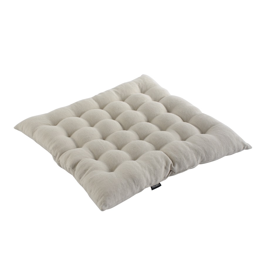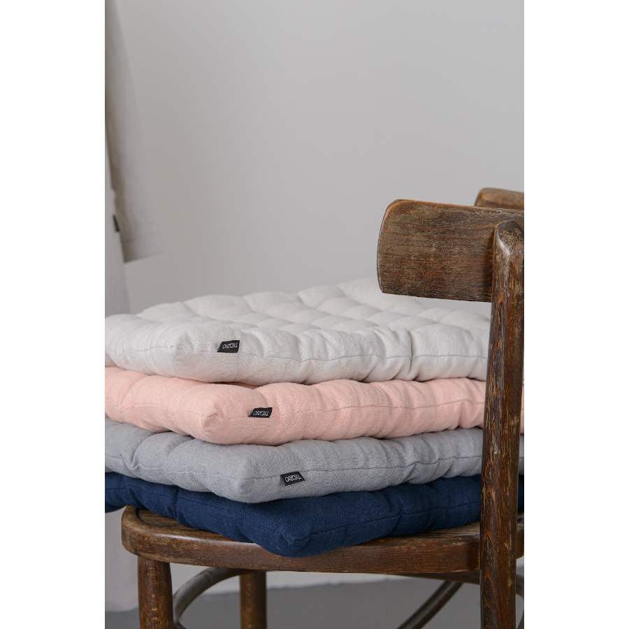 "Стеганая подушка на стул из умягченного льна – практичное и стильное украшение кухонной мебели. За счет элегантного дизайна изделие органично впишется в любой современный интерьер. Подушку можно использовать в качестве покрытия на деревянные или металлические стулья. Материал хорошо пропускает воздух и впитывает влагу, а также обладает гипоаллергенными и бактерицидными свойствами. Легкая в уходе модель с мягким наполнителем хорошо держит форму, поэтому подушка прослужит долго. Плотность ткани - 280GSM.