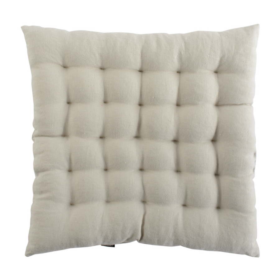 Подушка стеганая на стул из умягченного льна бежевого цвета Essential, 40х40 см