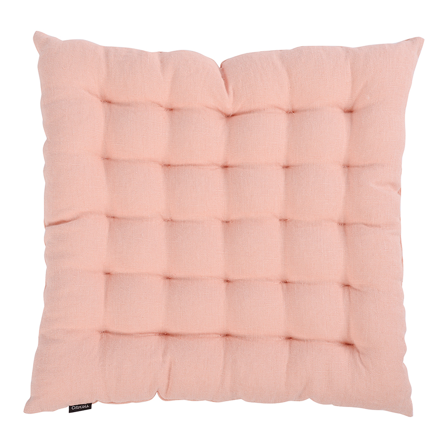 Подушка стеганая на стул из умягченного льна розово-пудрового цвета из коллекции Essential, 40х40 см