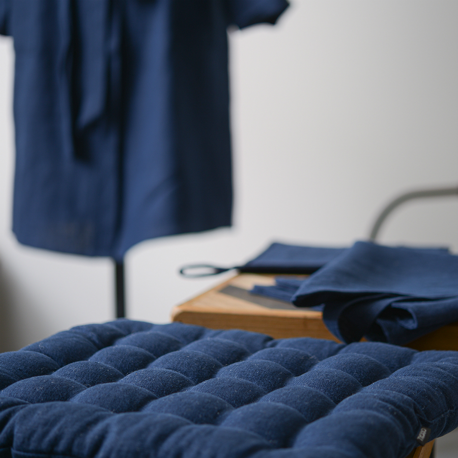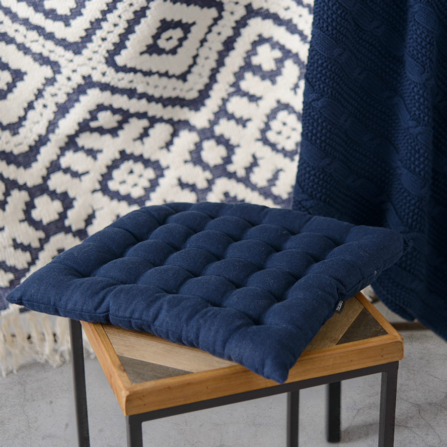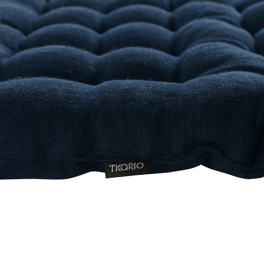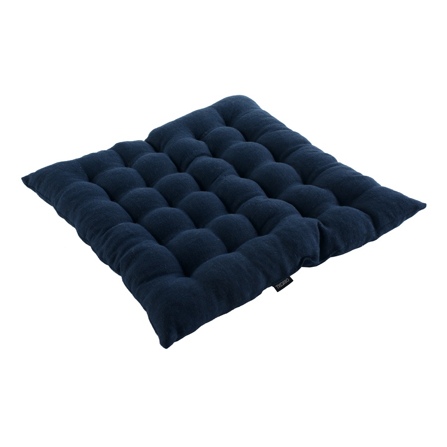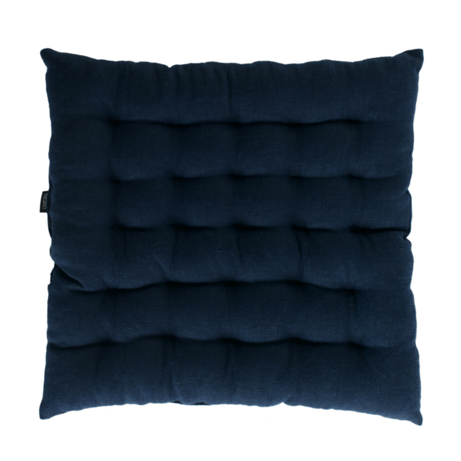 Подушка стеганая на стул из умягченного льна темно-синего цвета Essential, 40х40 см