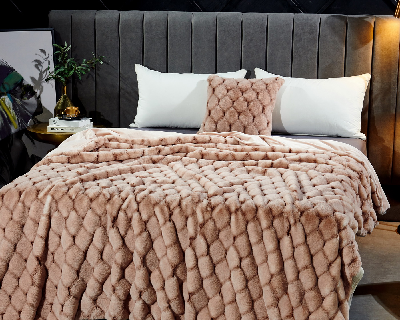 ПледРазмер: 160х220 смТкань: искусственный мехСостав: 100% вискозаПлотность: 680 гр/м2Особенности: рельефный рисунок меха, двойное окрашивание мехаУпаковка: текстильная сумкаУход: стирка 30гр.