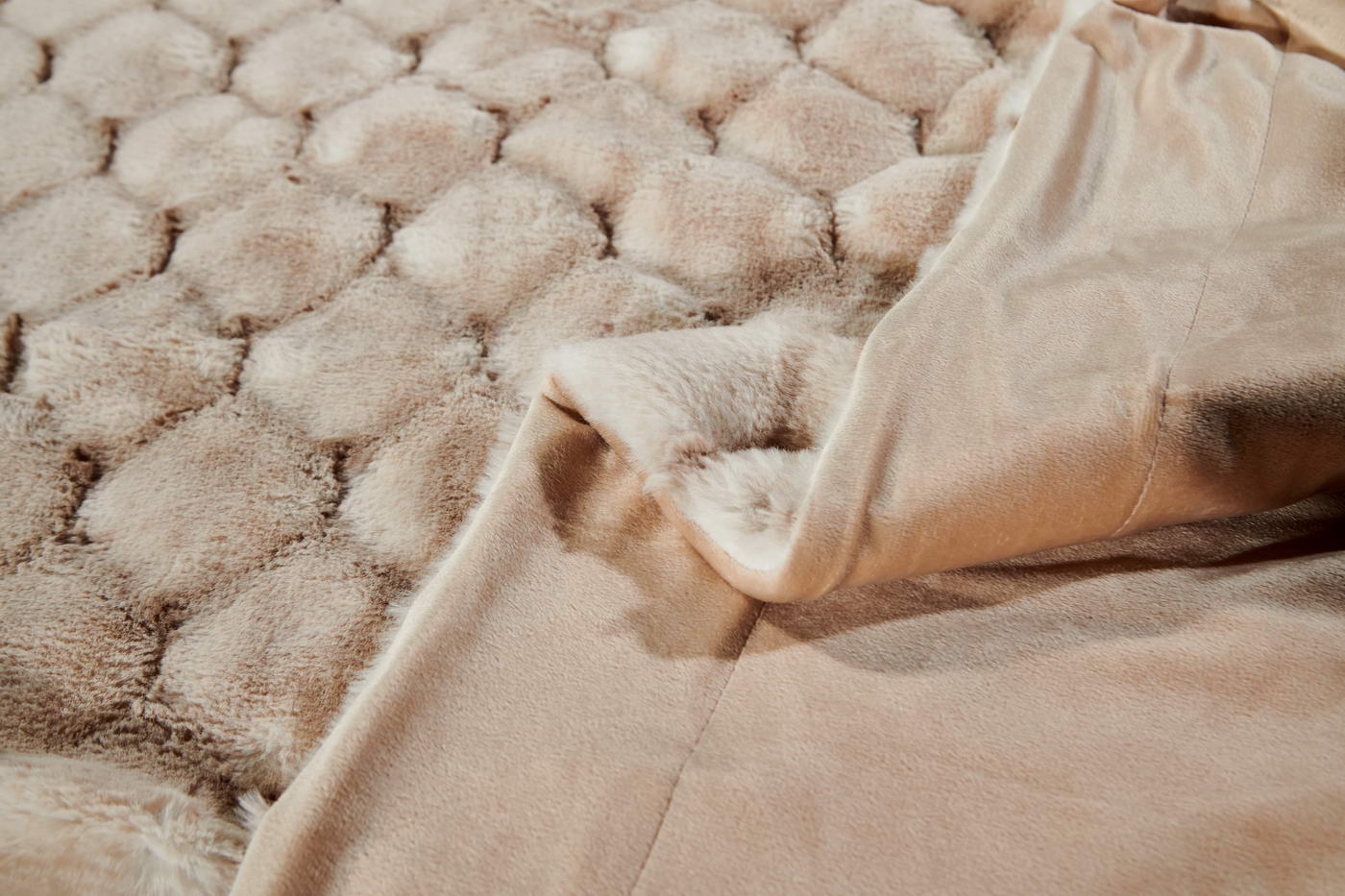 ПледРазмер: 220х240 смТкань: искусственный мехСостав: 100% вискозаПлотность: 680 гр/м2Особенности: рельефный рисунок меха, двойное окрашивание мехаУпаковка: текстильная сумкаУход: стирка 30гр.