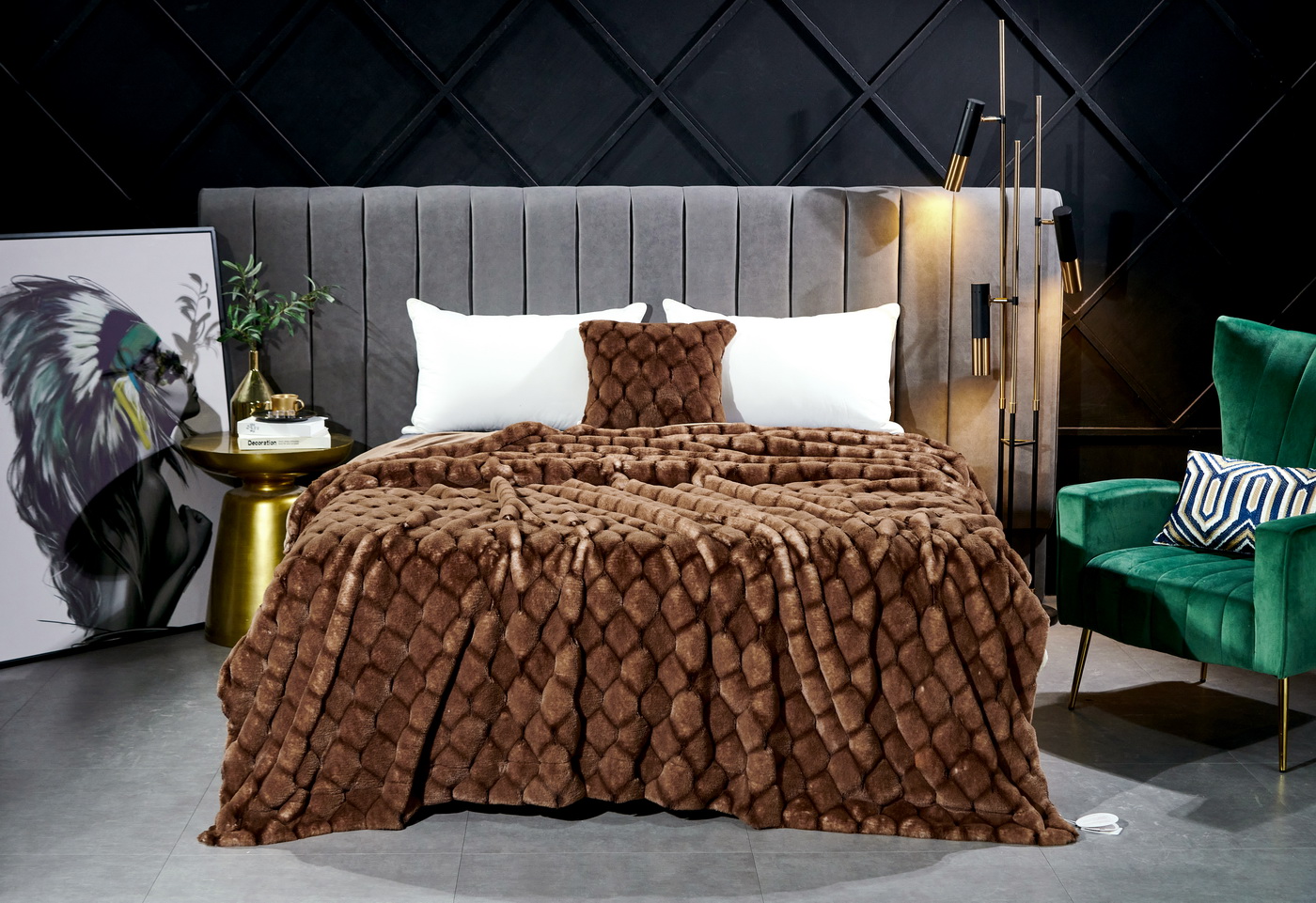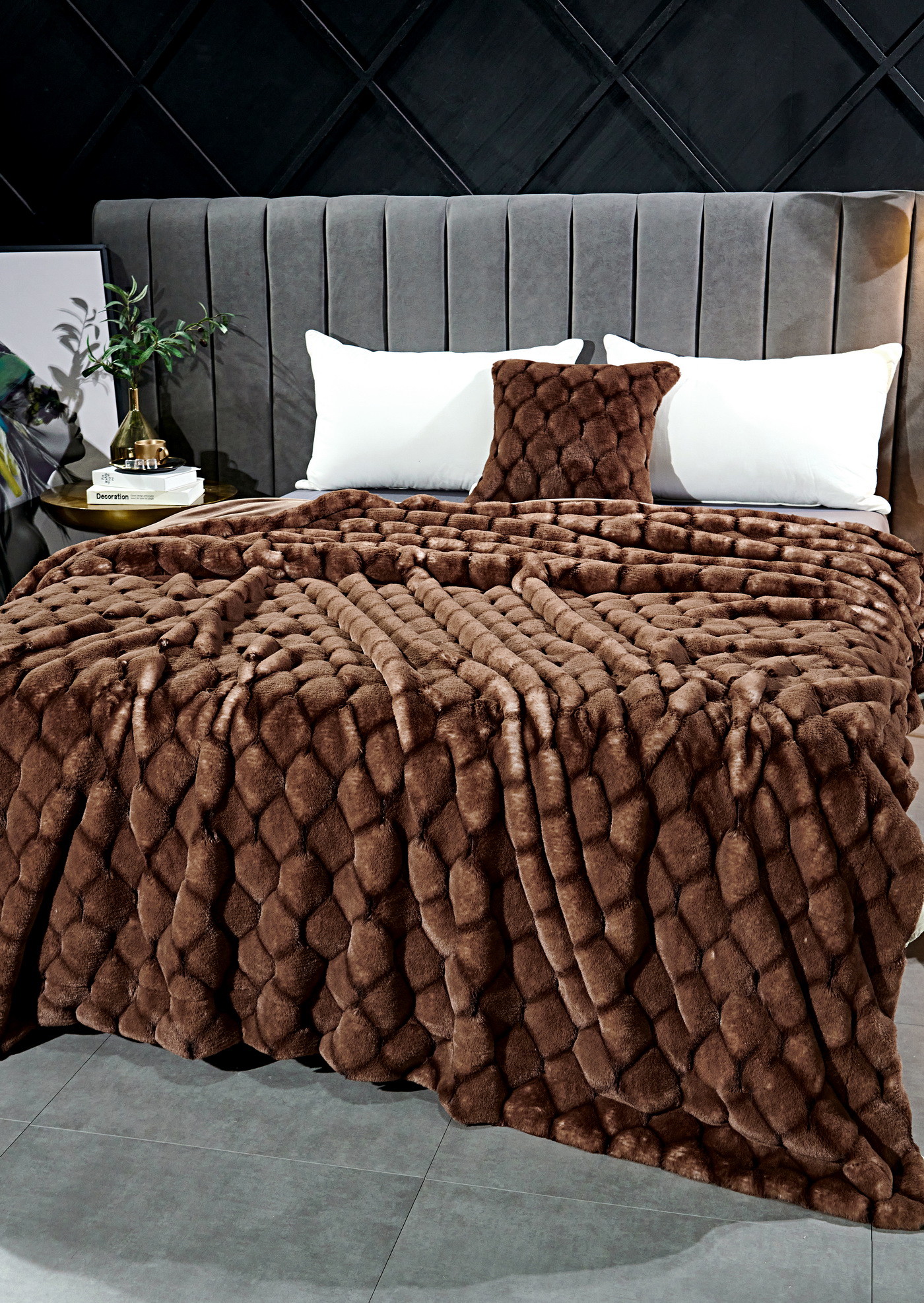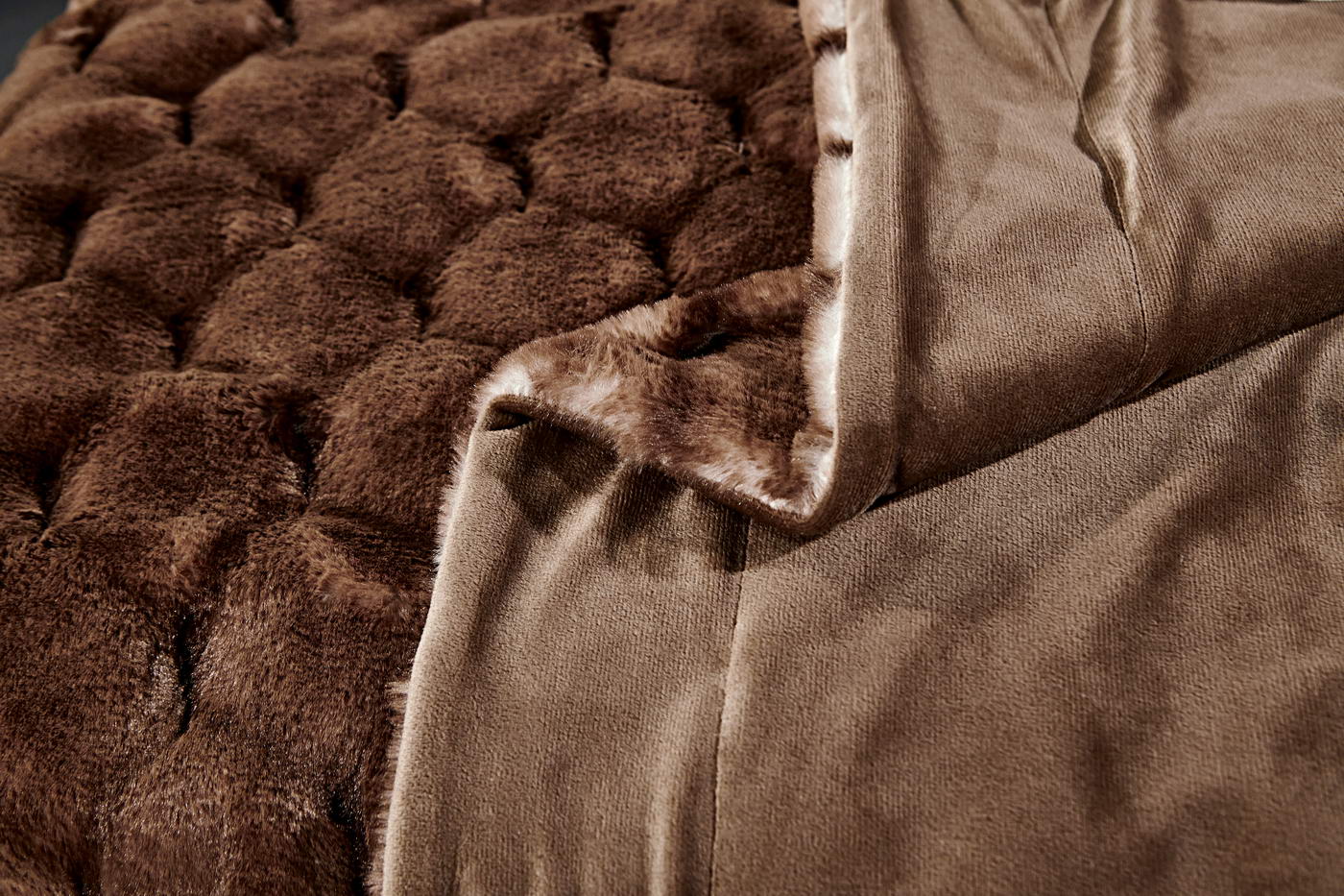 ПледРазмер: 160х220 смТкань: искусственный мехСостав: 100% вискозаПлотность: 680 гр/м2Особенности: рельефный рисунок меха, двойное окрашивание мехаУпаковка: текстильная сумкаУход: стирка 30гр.