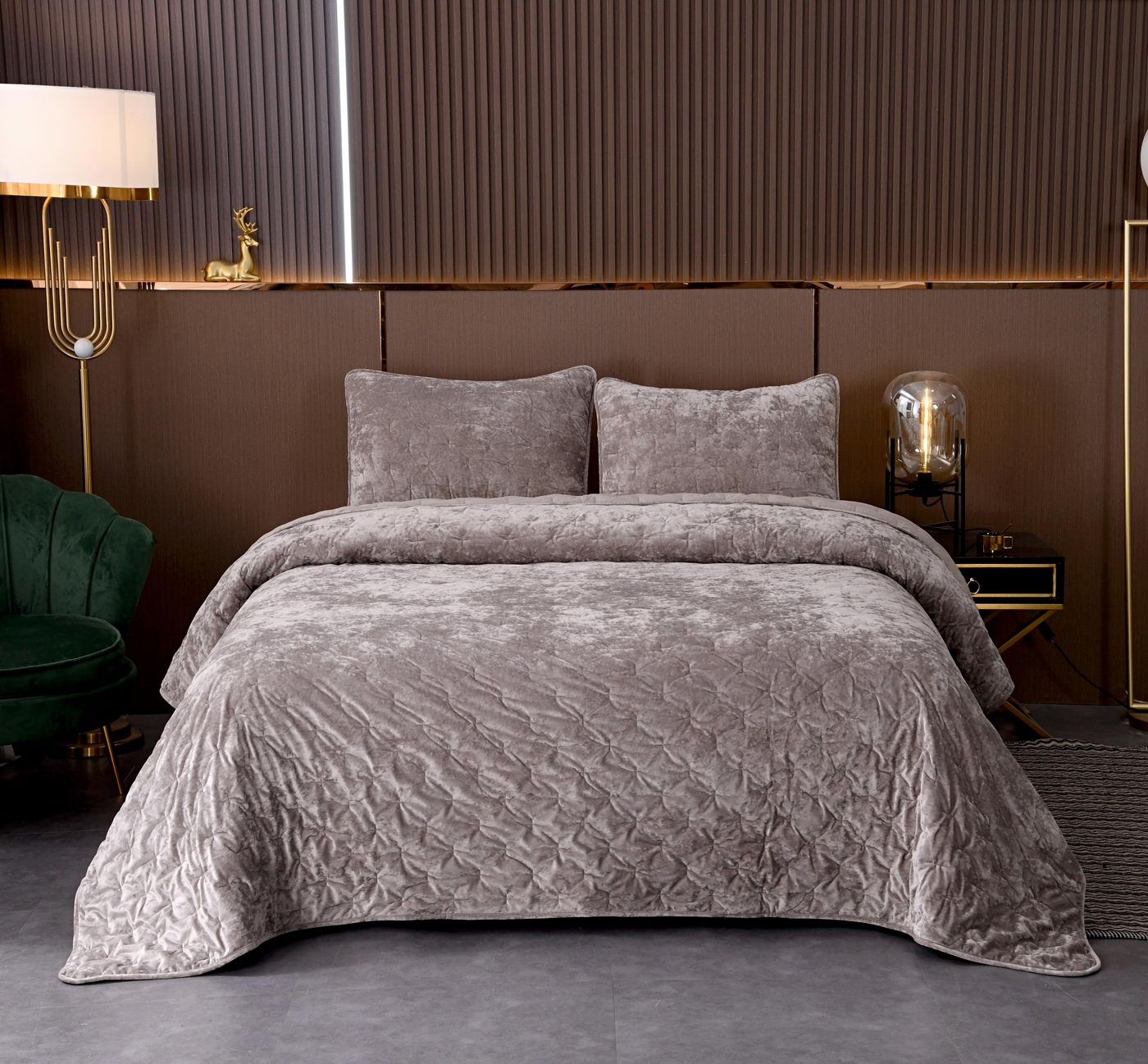 Покрывало декоративноеКомплектацияПокрывало: 240х260 см (1шт);Наволочка: 50х70 см (2шт);Плотность: 500гр/м2;Состав ткани: 100% вискоза;Наполнитель: микроволокно;Декоративная каретная стяжка;Пошив покрывала и наволочек с кантом;Упаковка: Текстильная сумкаУход: деликатная стирка 30°C.