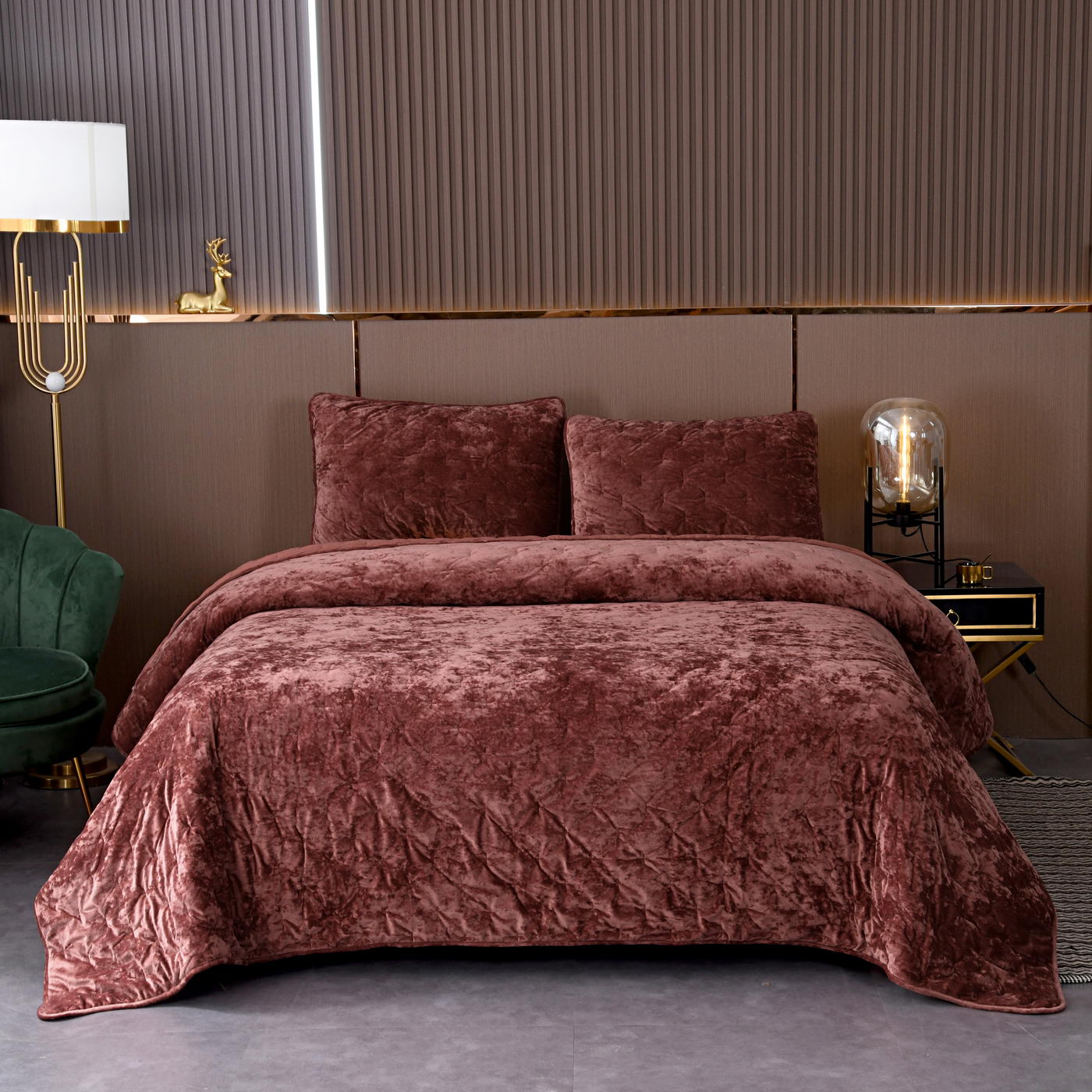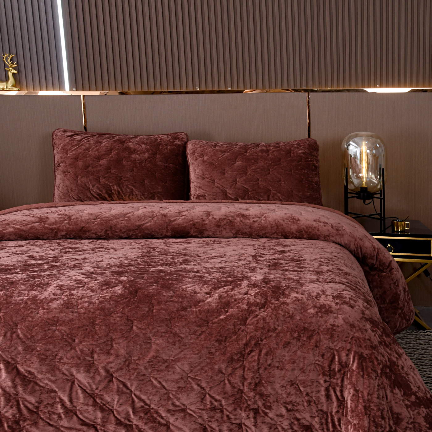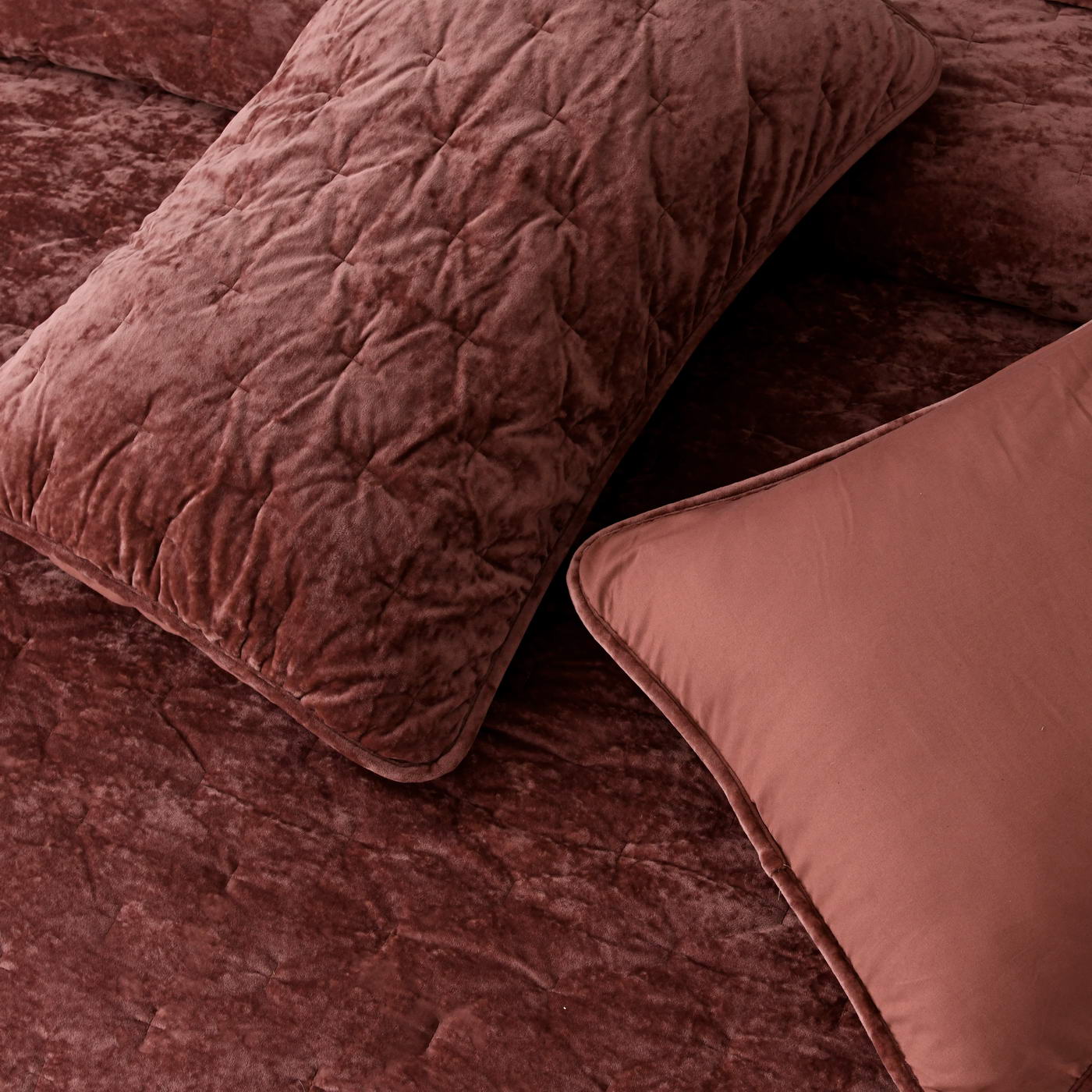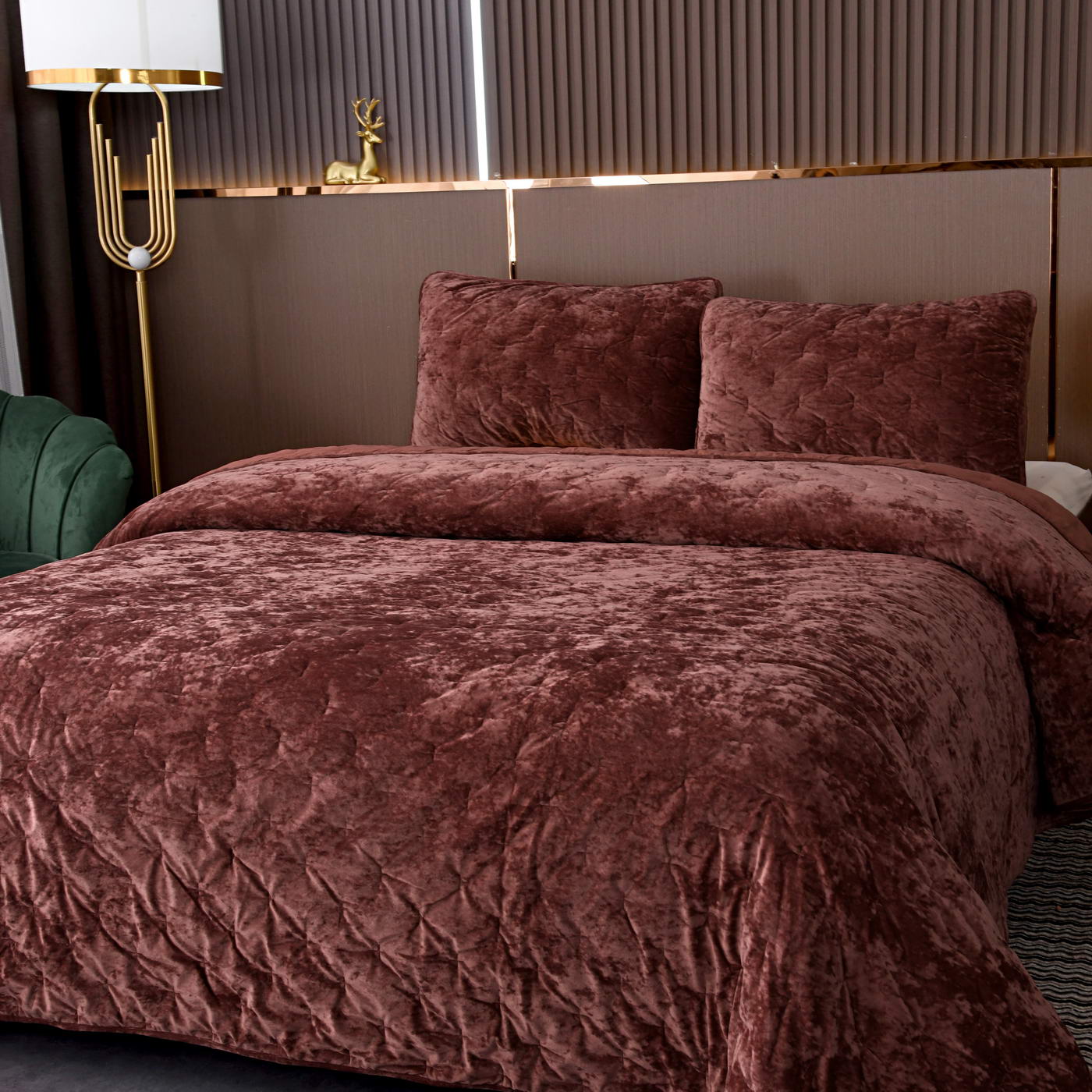 Покрывало декоративноеКомплектацияПокрывало: 240х260 см (1шт);Наволочка: 50х70 см (2шт);Плотность: 500гр/м2;Состав ткани: 100% вискоза;Наполнитель: микроволокно;Декоративная каретная стяжка;Пошив покрывала и наволочек с кантом;Упаковка: Текстильная сумкаУход: деликатная стирка 30°C.
