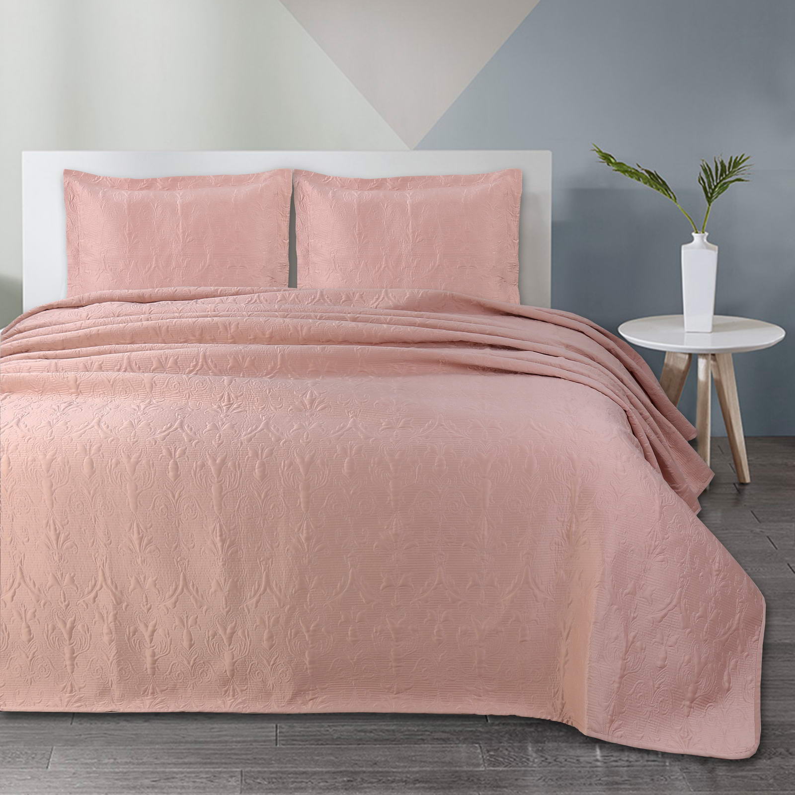 Покрывала СтеганноеКомплектация:Покрывало: 240х260Наволочки: 50х70 (2шт)Особенность: рельефная стежкаСостав: 70% Вискоза; 30% Хлопка.Упаковка: текстильная сумкаУход. Стирка 30'