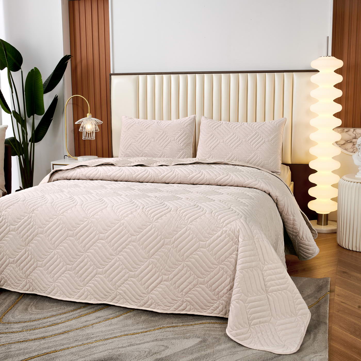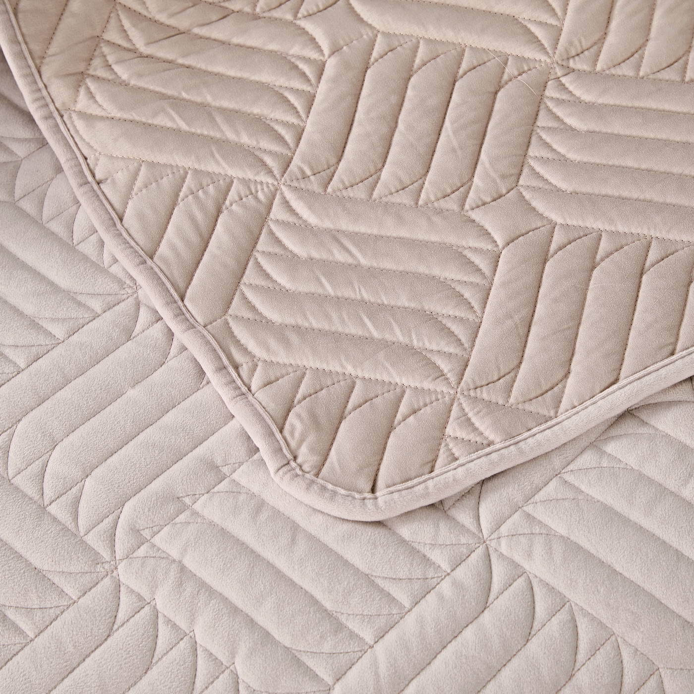 Покрывало стеганое с графическим узоромКомплектация:Покрывало: 240х260 (1);Наволочка: 50х70 (2шт);Плотность: 500 гр/м2 Состав ткани: 100% вискоза;Наполнитель: микроволокно;Пошив покрывала и наволочек с кантом, наволочки на запахеУпаковка: текстильная сумка;Уход: Стирка 30°C