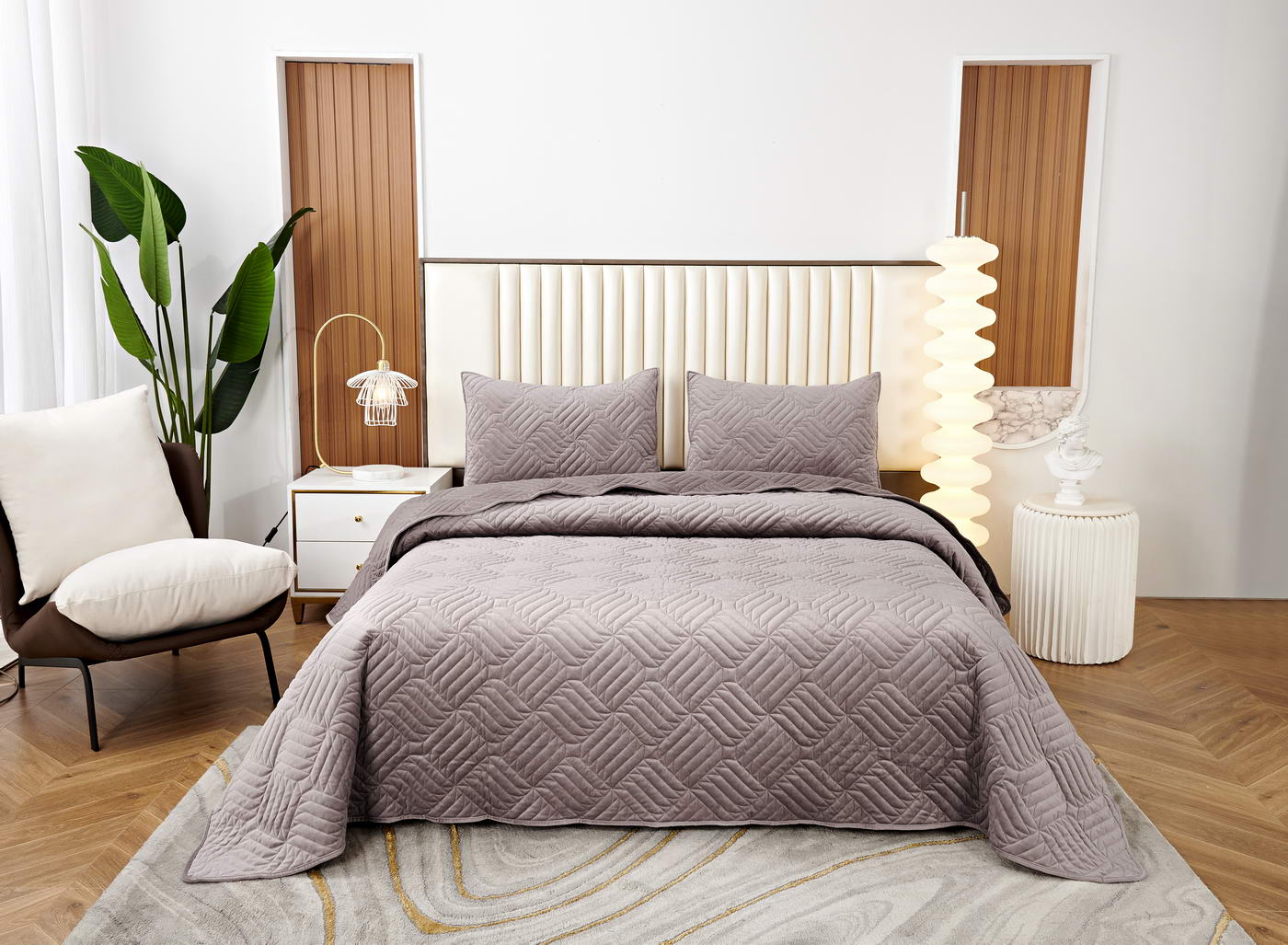 Покрывало стеганое с графическим узоромКомплектация:Покрывало: 240х260 (1);Наволочка: 50х70 (2шт);Плотность: 500 гр/м2 Состав ткани: 100% вискоза;Наполнитель: микроволокно;Пошив покрывала и наволочек с кантом, наволочки на запахеУпаковка: текстильная сумка;Уход: Стирка 30°C