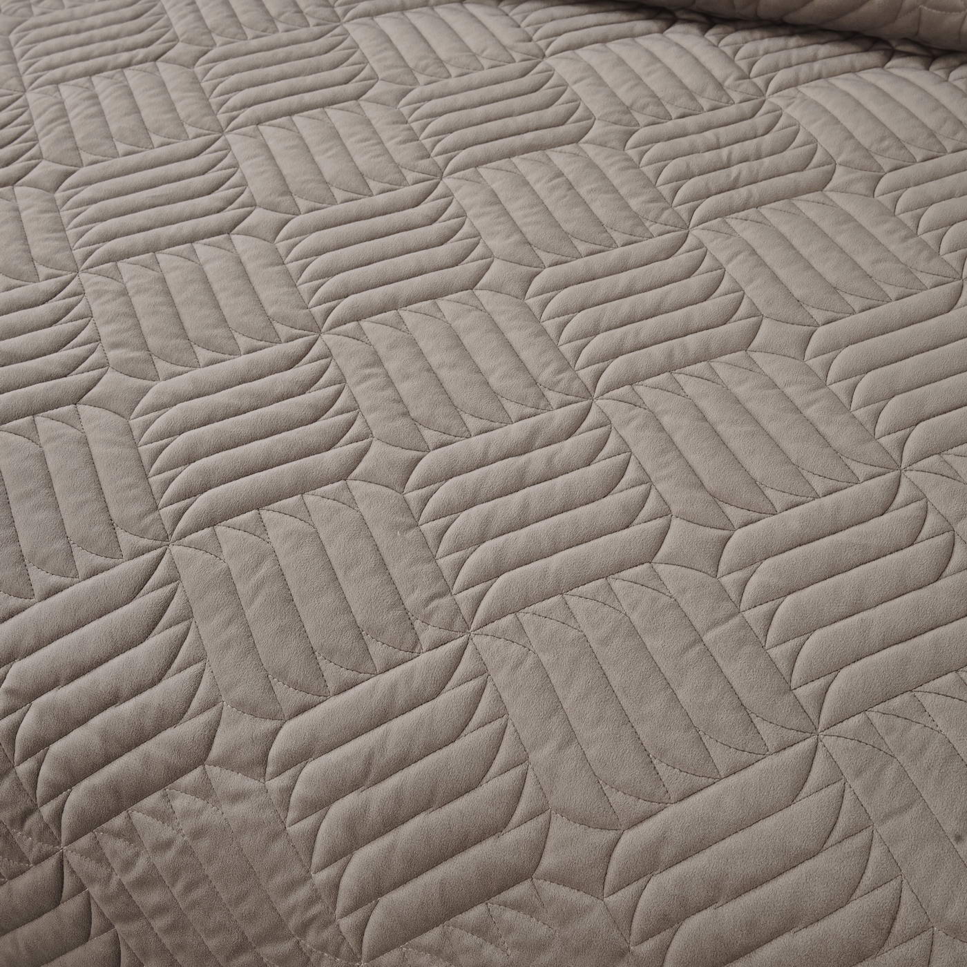 Покрывало стеганое с графическим узоромКомплектация:Покрывало: 240х260 (1);Наволочка: 50х70 (2шт);Плотность: 500 гр/м2 Состав ткани: 100% вискоза;Наполнитель: микроволокно;Пошив покрывала и наволочек с кантом, наволочки на запахеУпаковка: текстильная сумка;Уход: Стирка 30°C