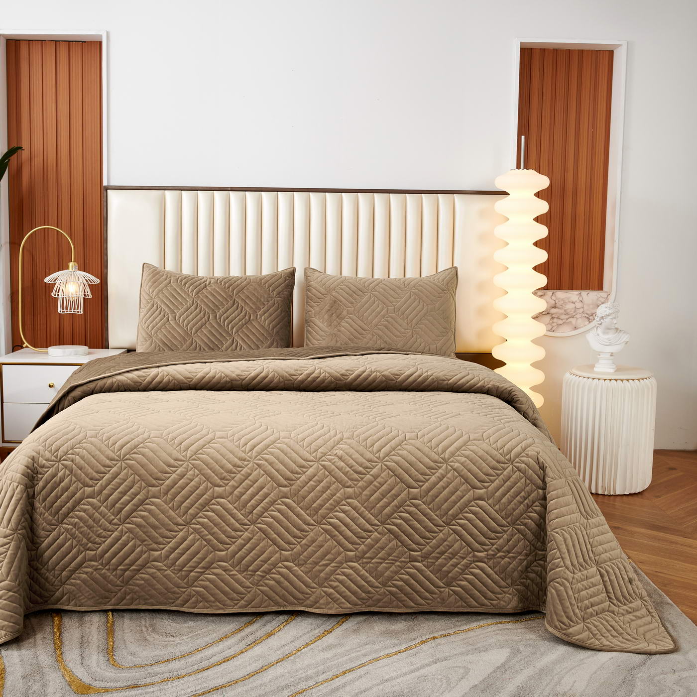 Покрывало стеганое с графическим узоромКомплектация:Покрывало: 240х260 (1);Наволочка: 50х70 (2шт);Плотность: 500 гр/м2 Состав ткани: 100% вискоза;Наполнитель: микроволокно;Пошив покрывала и наволочек с кантом, наволочки на запахеУпаковка: текстильная сумка;Уход: Стирка 30°C