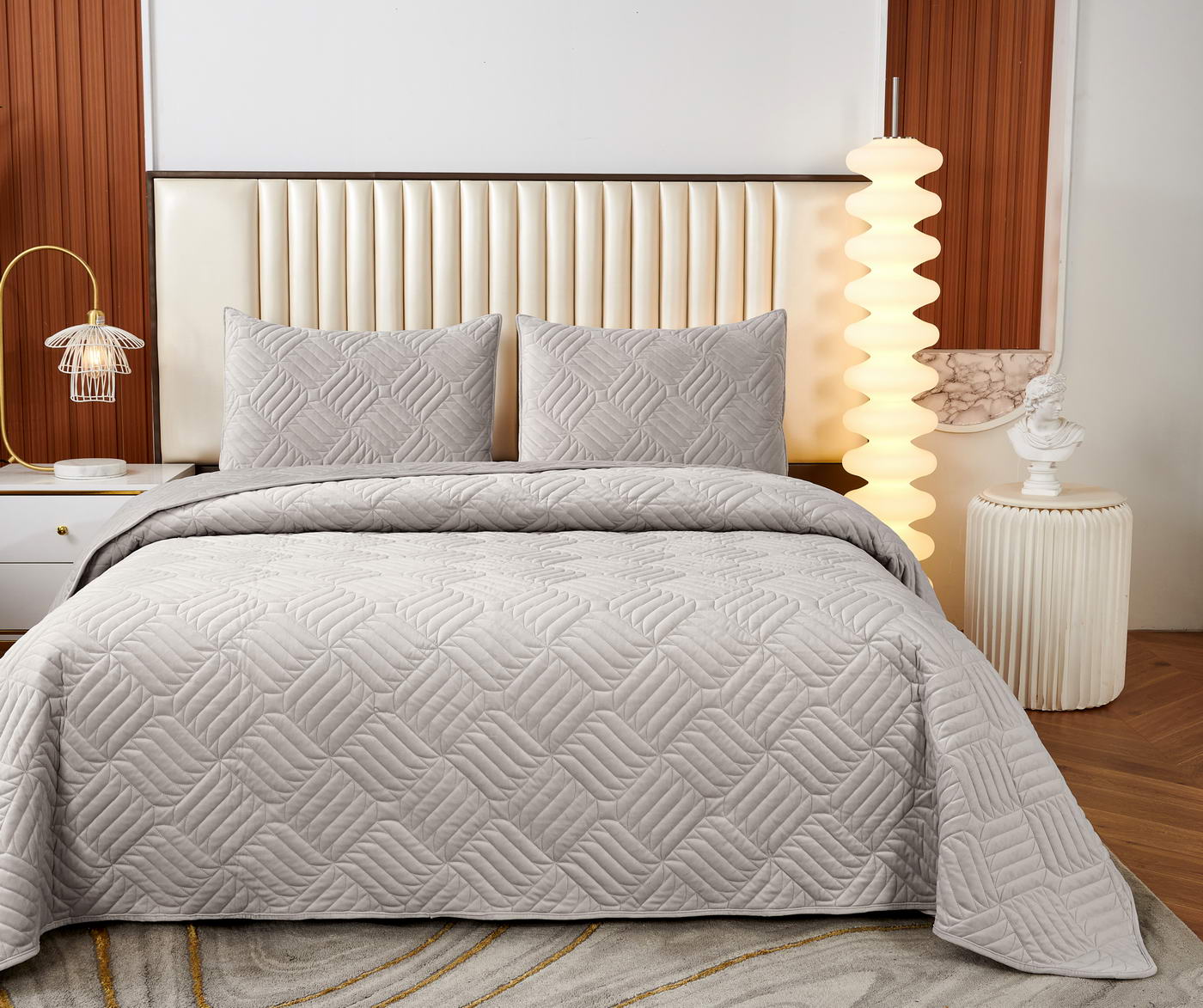Покрывало стеганое с графическим узоромКомплектация:Покрывало: 160х220 (1);Наволочка: 50х70 (1шт);Плотность: 500 гр/м2 Состав ткани: 100% вискоза;Наполнитель: микроволокно;Пошив покрывала и наволочек с кантом, наволочки на запахеУпаковка: текстильная сумка;Уход: Стирка 30°C