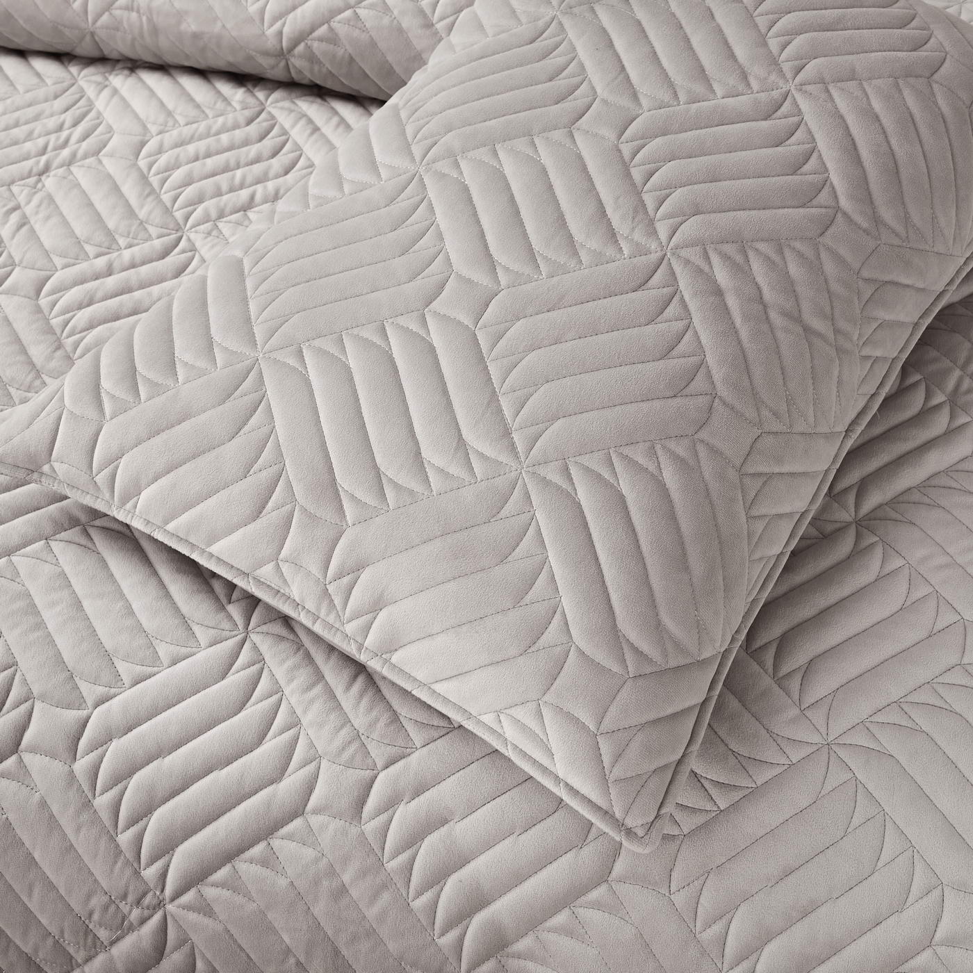 Покрывало стеганое с графическим узоромКомплектация:Покрывало: 240х260 (1);Наволочка: 50х70 (2шт);Плотность: 500 гр/м2 Состав ткани: 100% вискоза;Наполнитель: микроволокно;Пошив покрывала и наволочек с кантом, наволочки на запахеУпаковка: текстильная сумка;Уход: Стирка 30°C