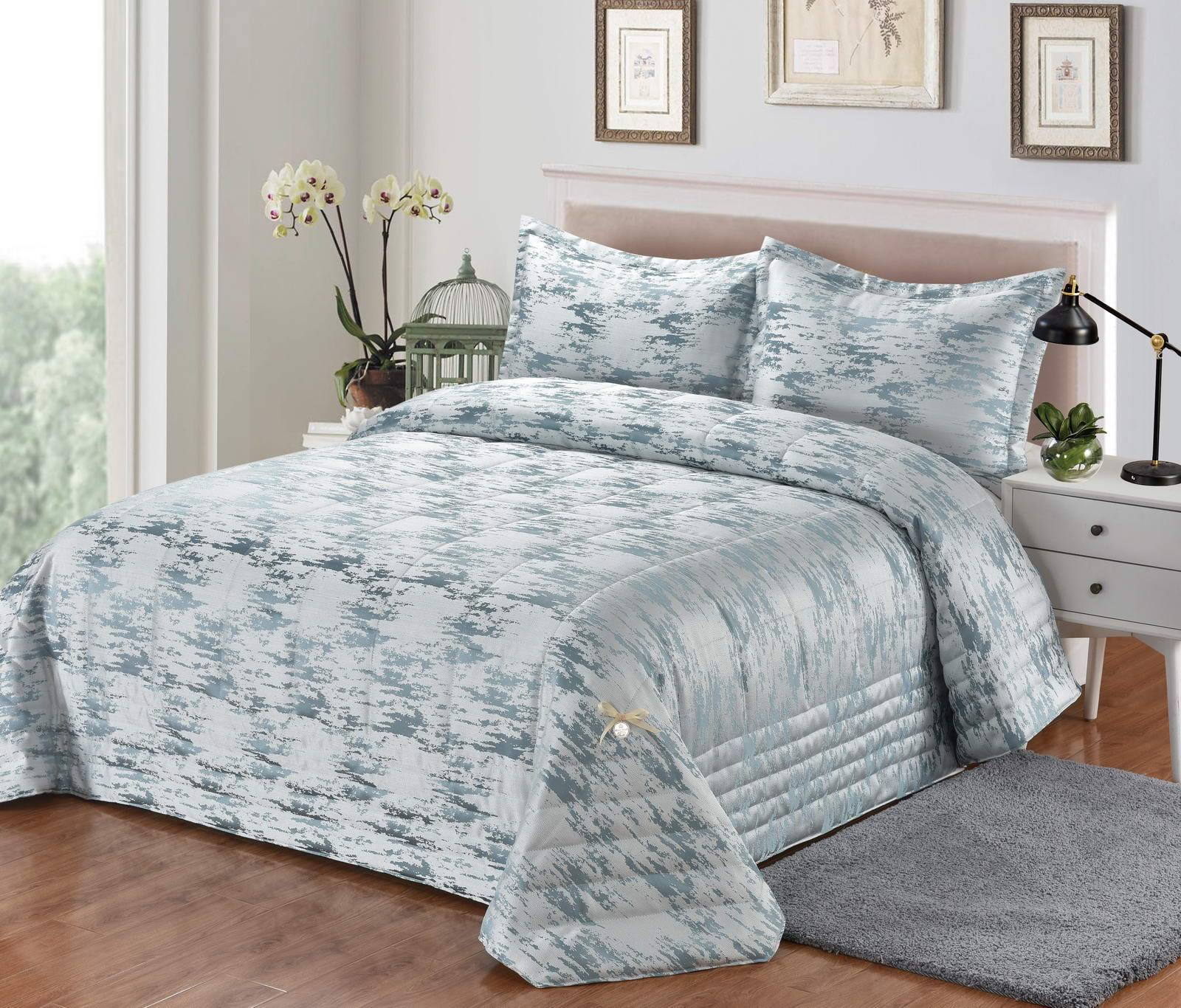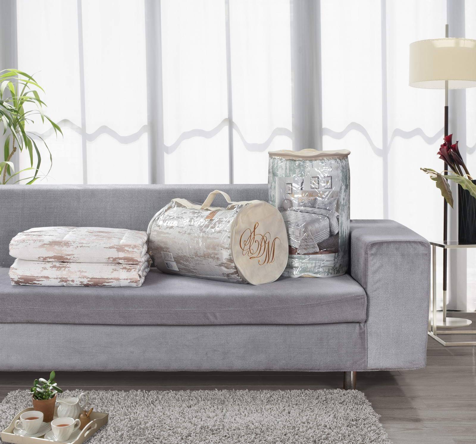 ПокрывалоЖаккардовый рисунок в стиле хай-текПокрывало 240х260Наволочка 50х70 (2)Состав: 100% полиэстерУход: бережная стирка, возможена хим. чистка, глажка разрешенаУпаковка: Подарочная упаковка