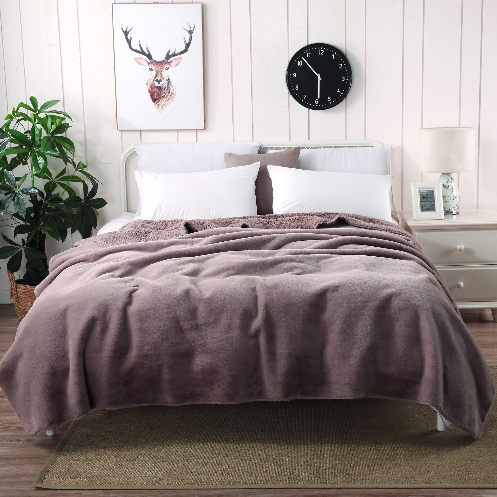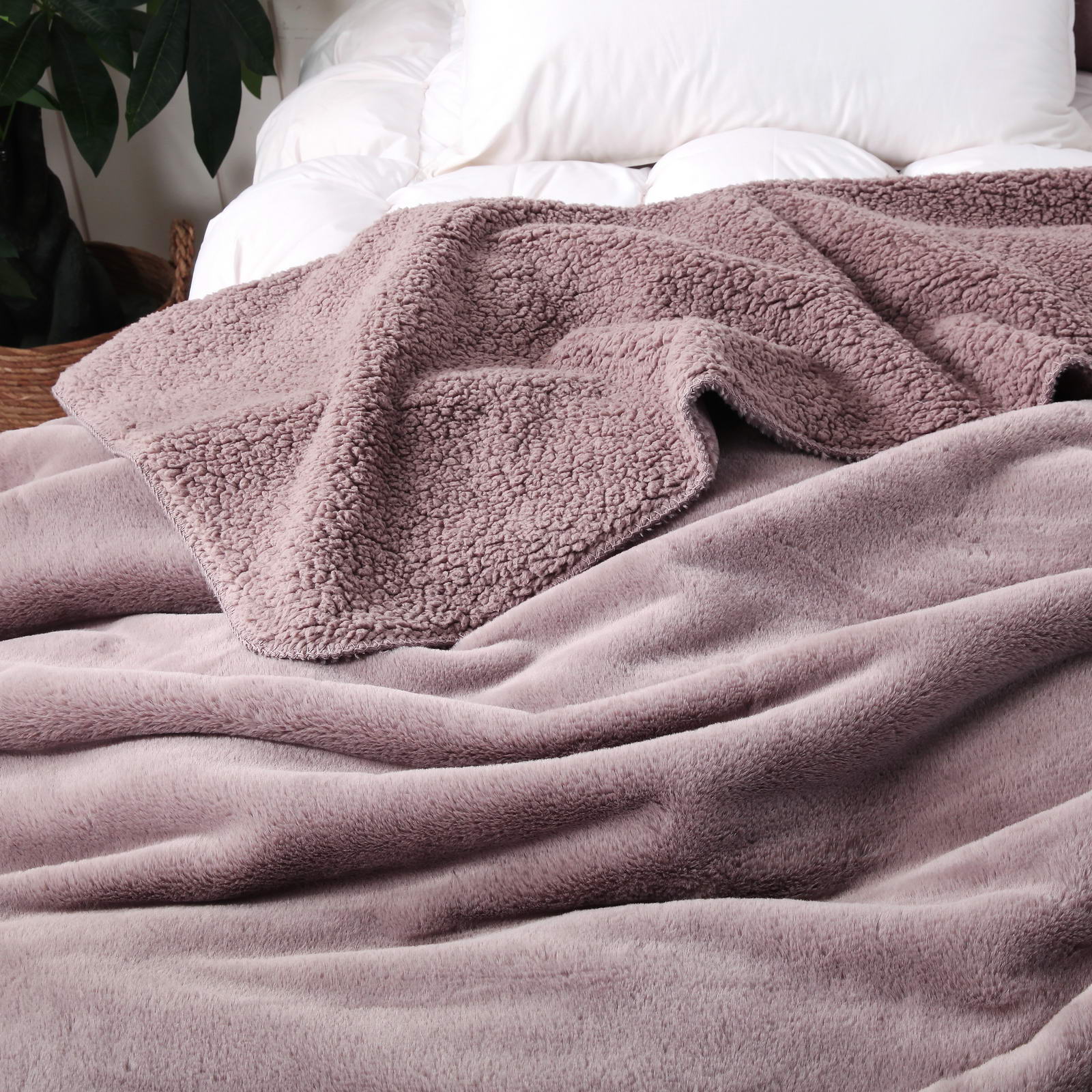 Плед двустороннийЛицевая ткань: искусственный мех, обратная - искусственная шерстьРазмер: 160х220Состав: 100% вискозаПлотность: 600 гр.кв.мУпаковка: текстильная сумкаУход: стирка 30гр.