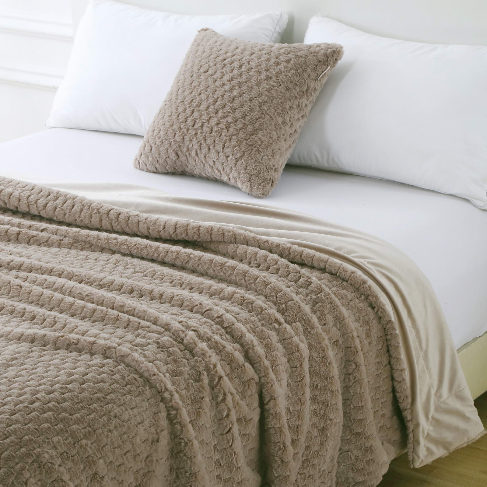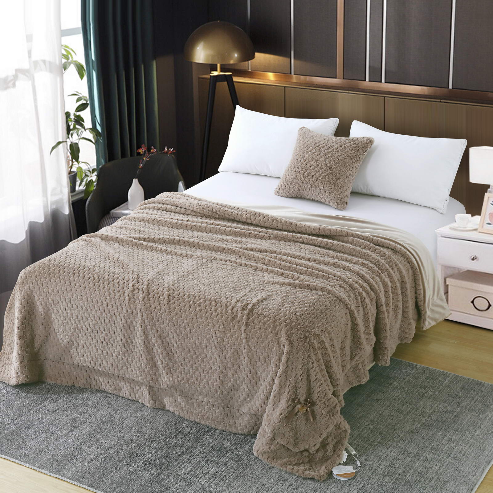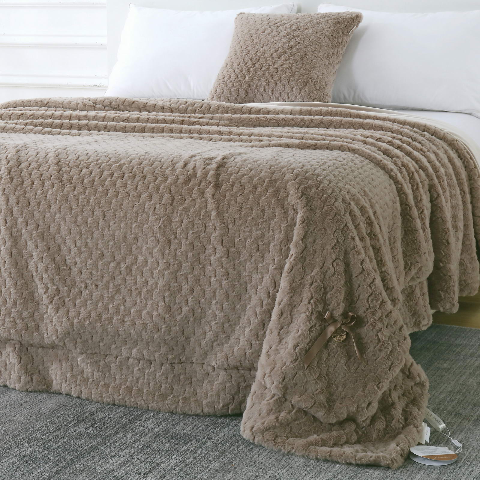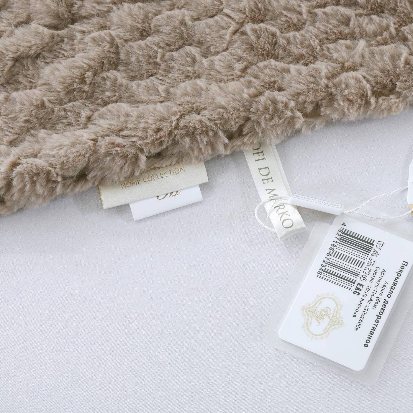ПледРазмер: 160х220Состав: 100% вискозаОсобенности: на лицевой стороне рельефный рисунокПлотность: 420/180 гр.кв.мУпаковка: текстильная сумка Уход: стирка 30гр.