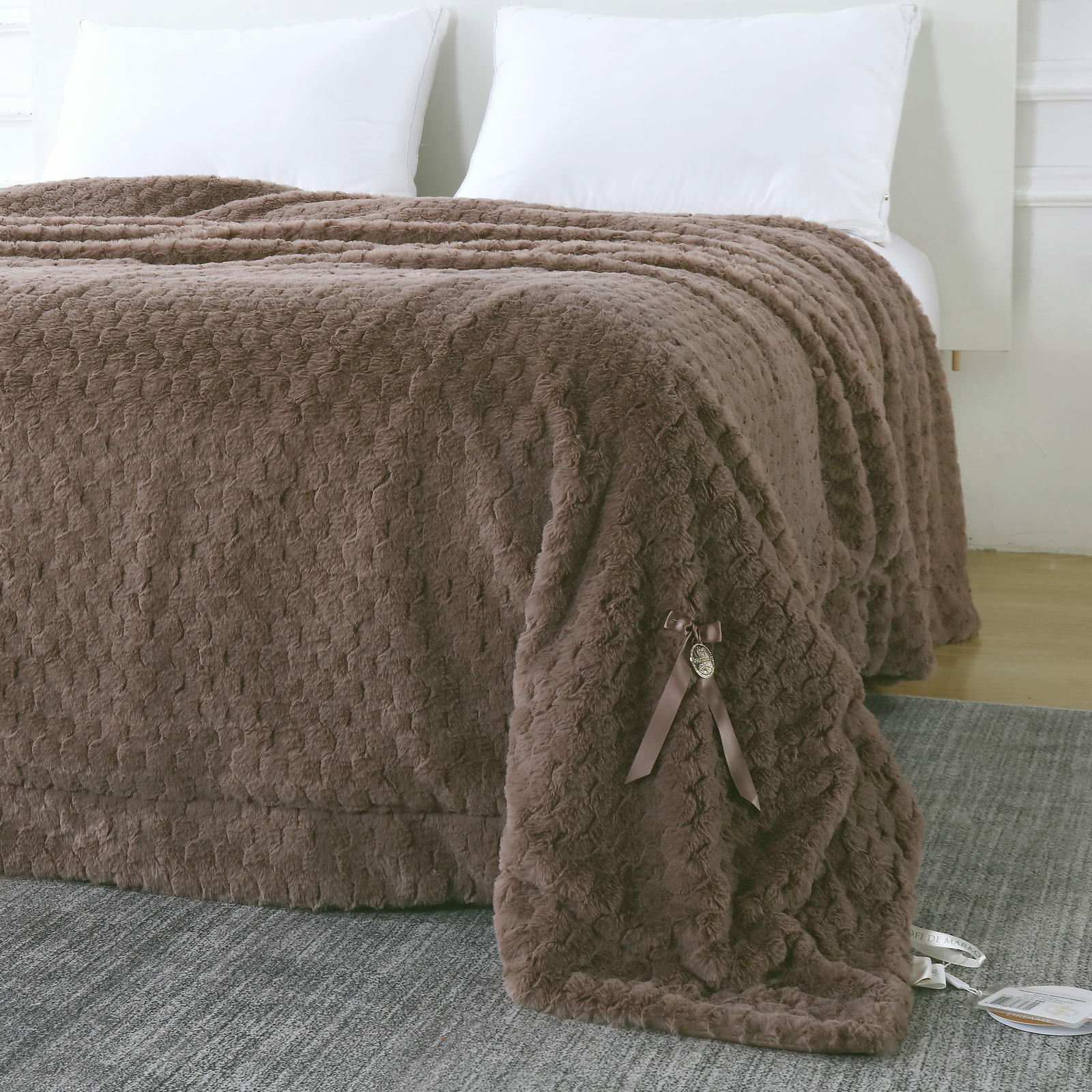 ПледРазмер: 160х220Состав: 100% вискозаОсобенности: на лицевой стороне рельефный рисунокПлотность: 420/180 гр.кв.мУпаковка: текстильная сумка Уход: стирка 30гр.