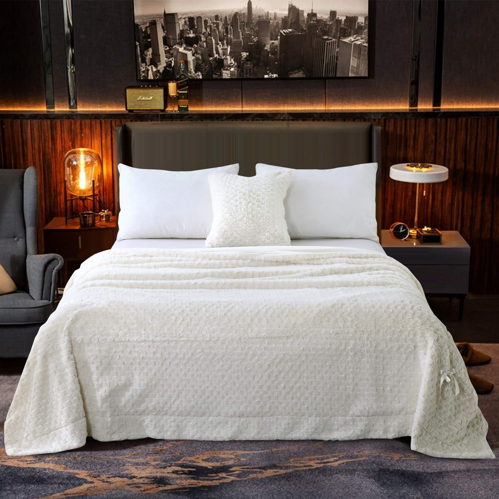 ПледРазмер: 220х240Состав: 100% вискозаОсобенности: на лицевой стороне рельефный рисунокПлотность: 420/180 гр.кв.мУпаковка: текстильная сумка Уход: стирка 30гр.