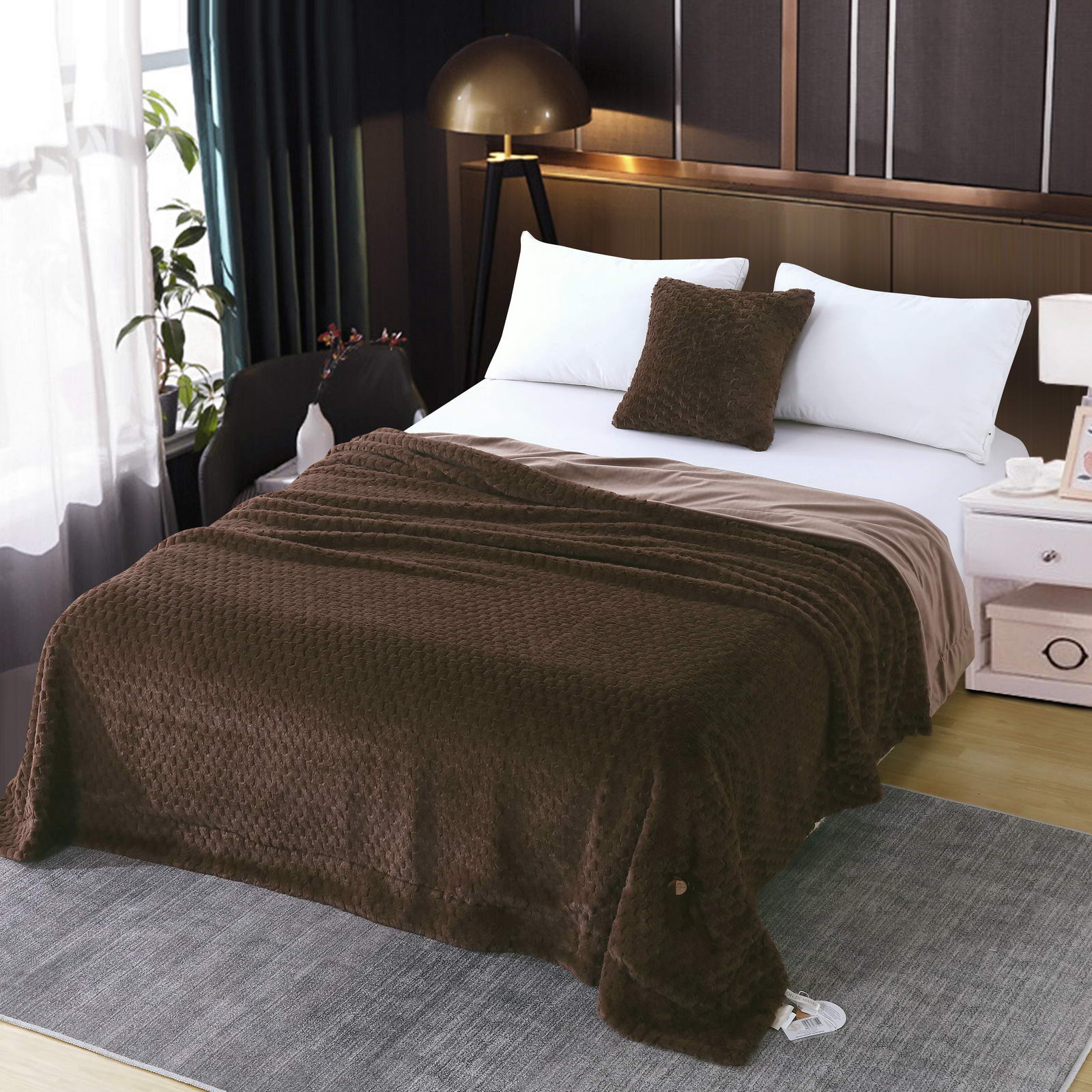 ПледРазмер: 220х240Состав: 100% вискозаОсобенности: на лицевой стороне рельефный рисунокПлотность: 420/180 гр.кв.мУпаковка: текстильная сумка Уход: стирка 30гр.