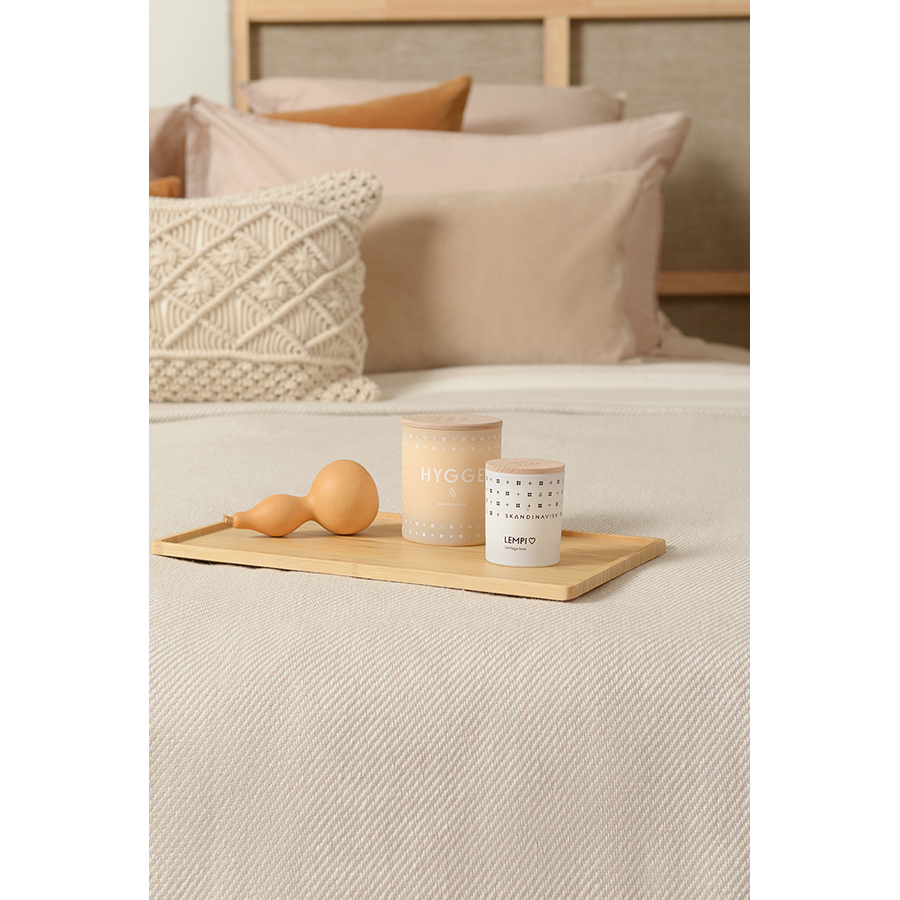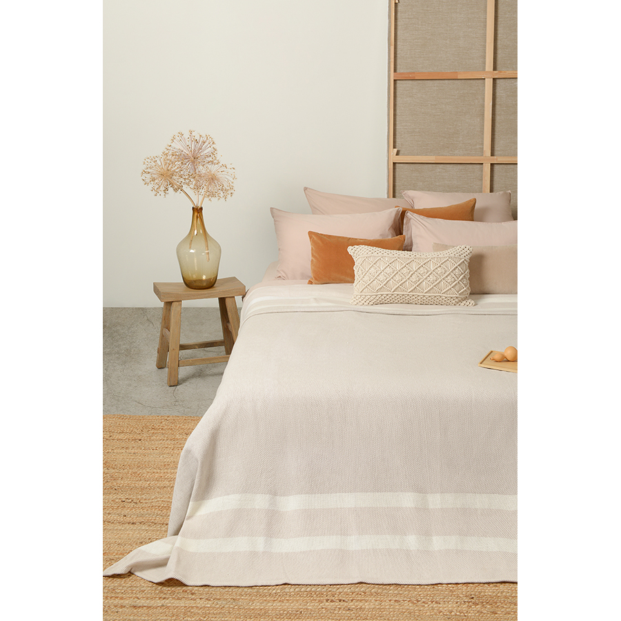 "Благодаря нейтральному дизайну покрывало базовое бежевого цвета из коллекции Ethnic впишется в любой современный интерьер и будет одинаково хорошо смотреться в гостиной и спальне. Изделие из прочного гипоаллергенного хлопка не электризуется и приятно на ощупь. Изделие упаковано в брендированную крафтовую коробку.