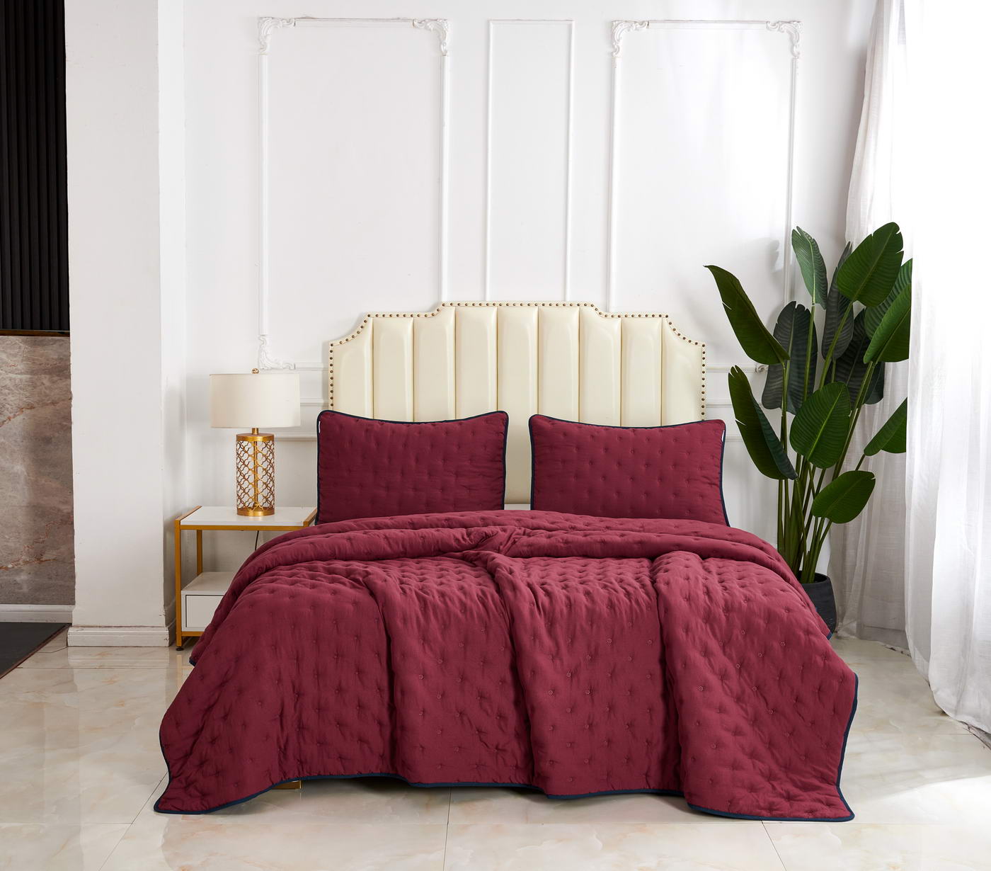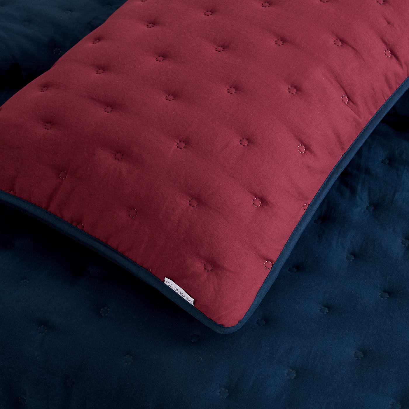 Покрывало стеганоеКомплектация:Покрывало: 160х220 (1шт);Наволочка: 50х70 (1шт);Плотность: 300гр/м2 (90/120/90);Состав ткани: 100% полиэстер;Наполнитель: микроволокно;Упаковка: сумка ПВХ;Уход: Стирка 30°C