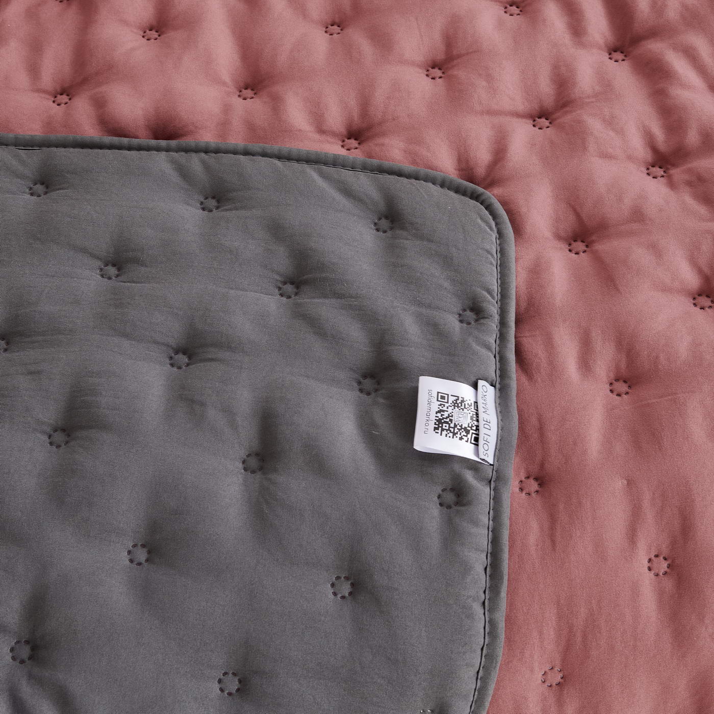 Покрывало стеганоеКомплектация:Покрывало: 230х250 (1шт);Наволочка: 50х70 (2шт);Плотность: 300гр/м2 (90/120/90);Состав ткани: 100% полиэстер;Наполнитель: микроволокно;Упаковка: сумка ПВХ;Уход: Стирка 30°C