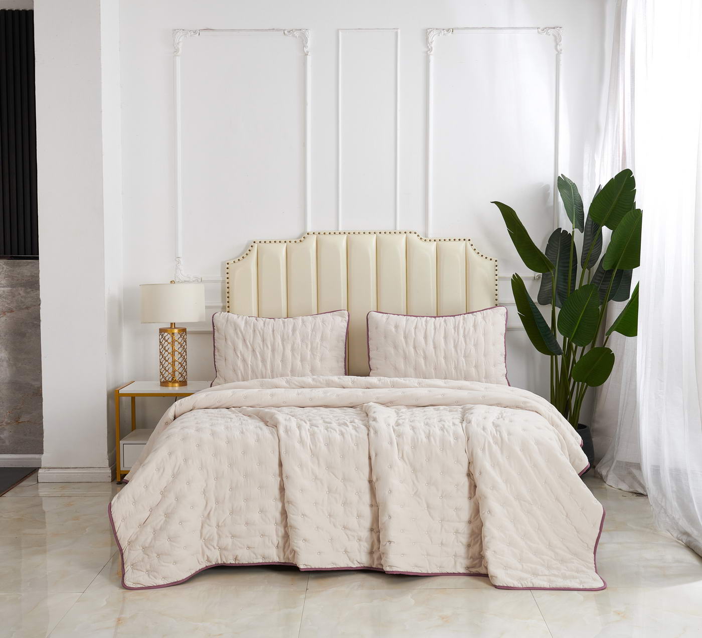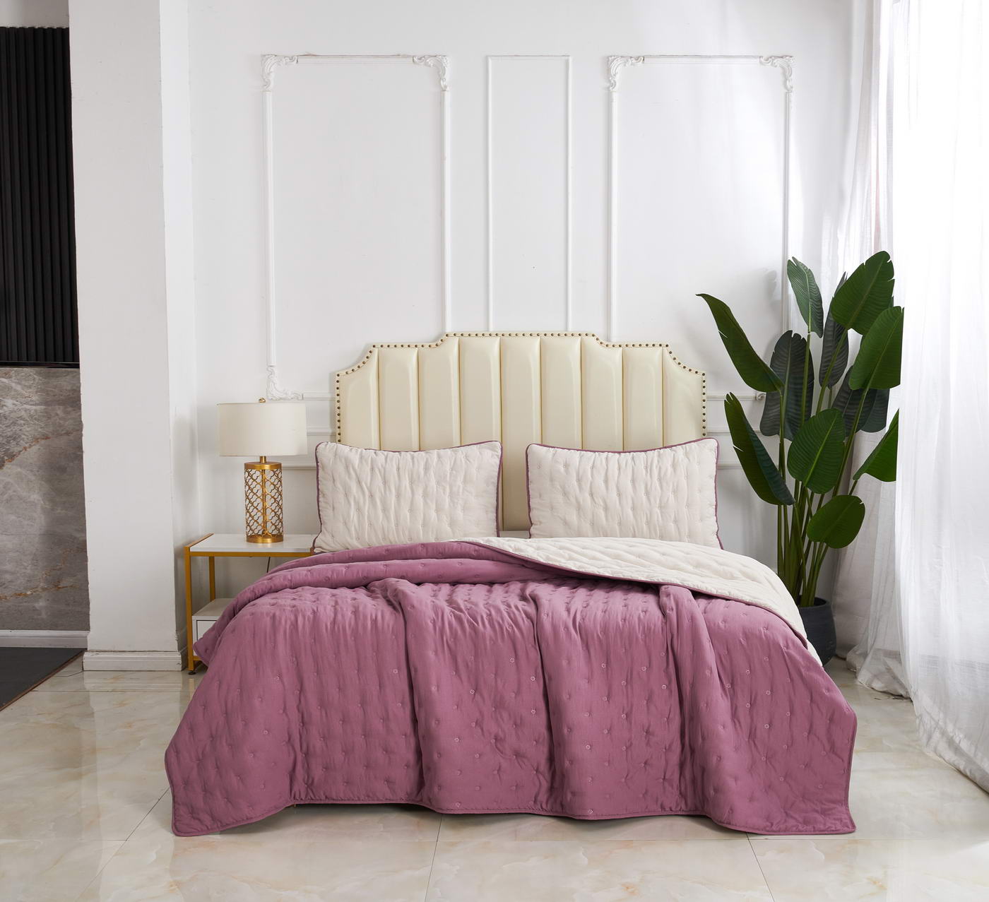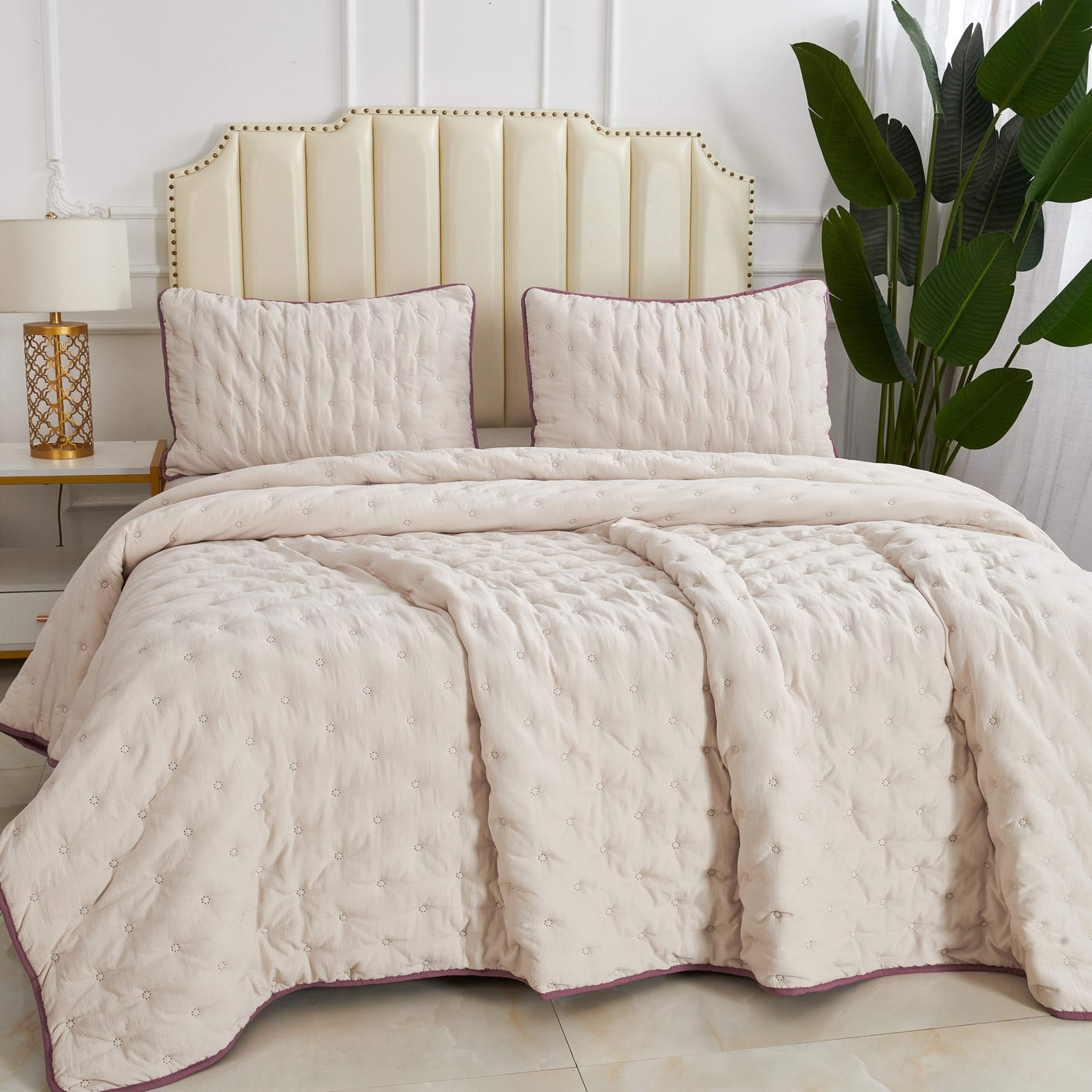 Покрывало стеганоеКомплектация:Покрывало: 160х220 (1шт);Наволочка: 50х70 (1шт);Плотность: 300гр/м2 (90/120/90);Состав ткани: 100% полиэстер;Наполнитель: микроволокно;Упаковка: сумка ПВХ;Уход: Стирка 30°C