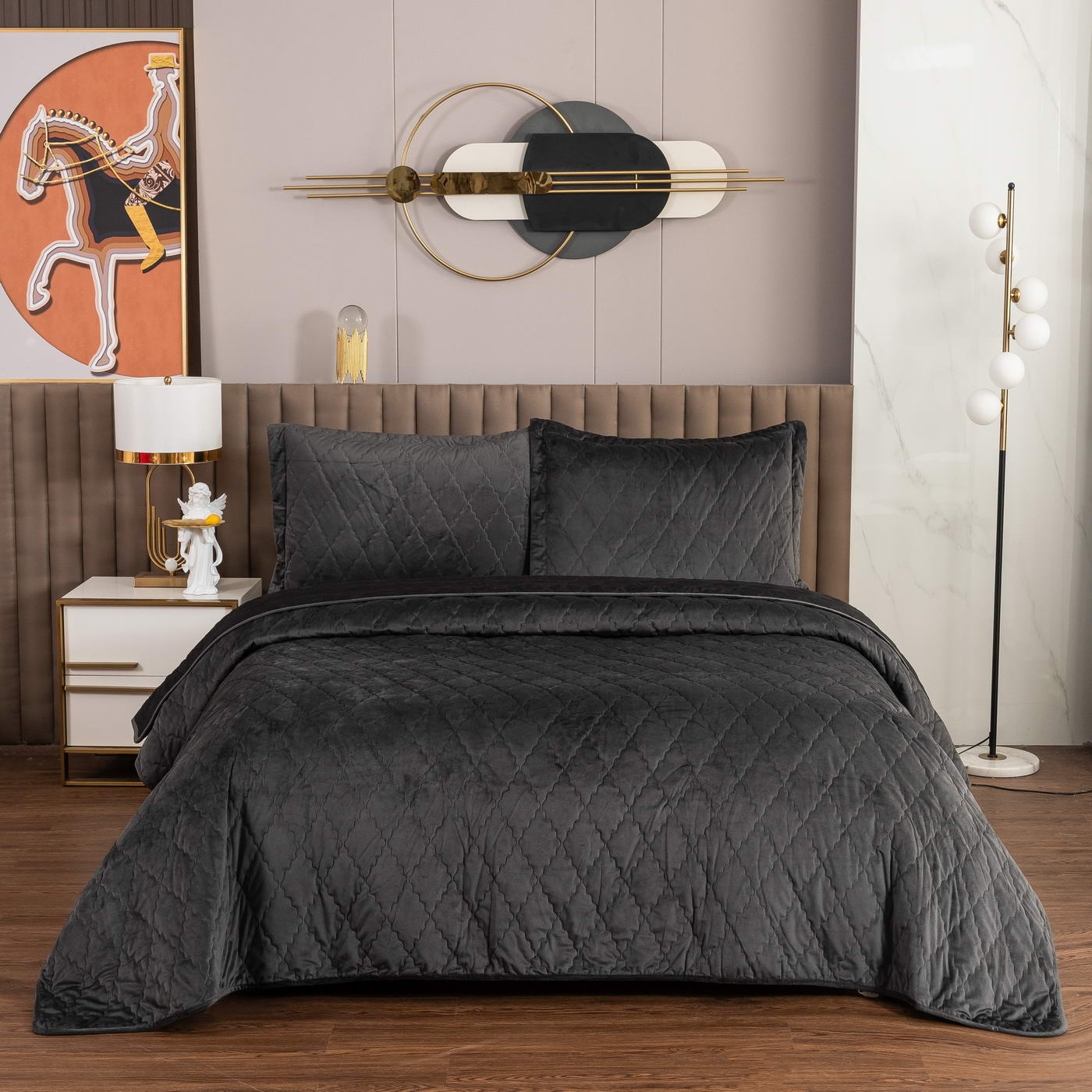 Покрывало велюровое с термостежкой.Состав ткани : 100% вискозаНаполнитель: микроволокноКомплектация:Покрывало 240х260 (1шт)Наволочки 50х70+5см (2 шт)Упаковка : Текстильная сумка с фото.