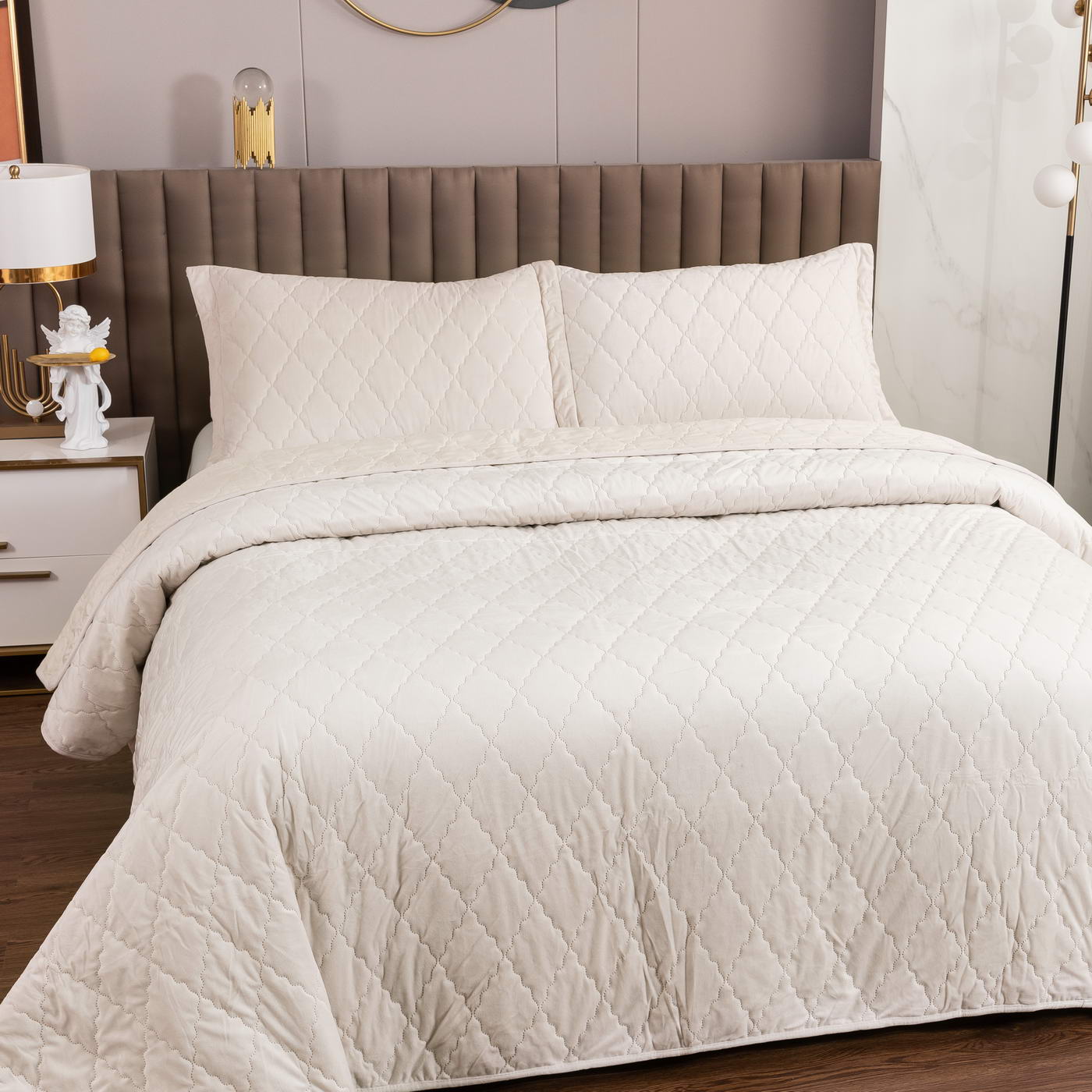 Покрывало велюровое с термостежкой.Состав ткани : 100% вискозаНаполнитель: микроволокноКомплектация:Покрывало 240х260 (1шт)Наволочки 50х70+5см (2 шт)Упаковка : Текстильная сумка с фото.