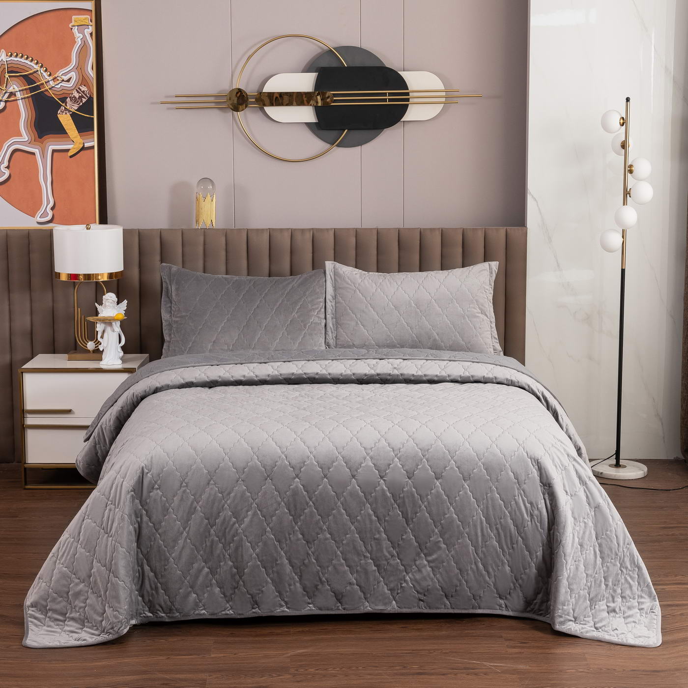 Покрывало велюровое с термостежкой.Состав ткани : 100% вискозаНаполнитель: микроволокноКомплектация:Покрывало 240х260 (1шт)Наволочки 50х70+5см (2 шт)Упаковка : Текстильная сумка с фото.